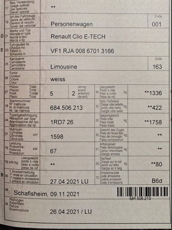 Fahrzeug wird noch genutzt.