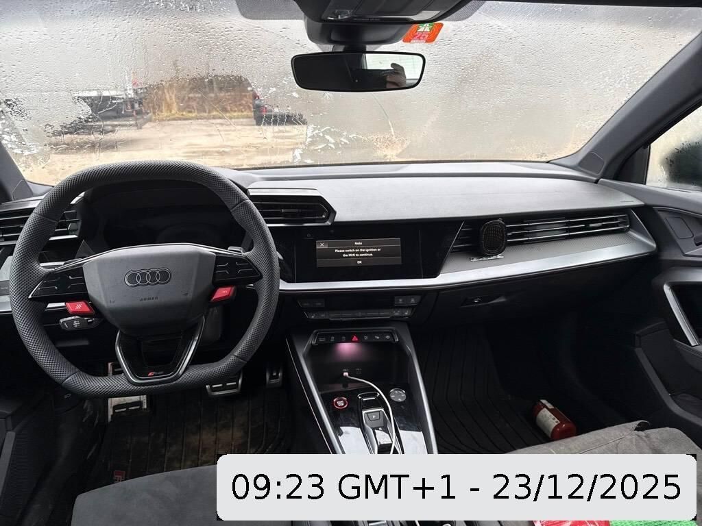 Mèdias: Réception radio numérique, Cockpit virtuel Audi plus mit zusätzlichem RS-Layout, Suspension: suspension sport RS, Mèdias: Audi Soundsystem, Direction progressive, Rétroviseurs extérieurs en noir, Sans Barres de toit, Mèdias: Audi Application Store et interface pour smartphone, Peinture Uni, Pack: Pack optique noir plus, Audi drive select, Appel d’urgence légal, Boîte: Boîte de vitesses manuelle automatisée à 7 rapports, Assist: Audi pre sense front, Détecteur de luminosité et de pluie, Système de nettoyage des phares, Verrouillage central avec télécommande, Décor: Application décorative en carbone Atlas sergé, Mèdias: Audi phone box light, Pack rangement et coffre, Becquet de toit S, Assist: Électronique contrôle de la traction, Sièges AV de sport, Lunette arrière, porte arrière et vitres latérales en verre transparent, Pare-brise avec vitrage athermique et acoustique avec bande de couleur grise, Roues: Affichage du contrôle de la pression des pneus, Feux de circulation diurnes, Éléments extérieurs RS en noir mat, Mèdias: Audi connect appel d’urgence et service avec Audi connect Remote & Control, Direction assistée, Assist: Détecteur de distraction et de fatigue, Lumière: Éclairage du seuil de porte à LED avec projection RS à l’avant, Sièges: dossier de siège arrière, partiellement rabattable, Clé à télécommande sans verrouillage de sécurité, Lumiére: Feu arrière foncé LED avec clignotant dnymique, Décor: Applications d’intérieur aspect vanadium, Système start-stop, Trousse de premiers secours et triangle - de panne, Garantie: Audi Garantie 2 ans / kilométrage illimité - (dès 1re mise en circ.), Roues: Jantes à 5 rayons en Y, noir mat - Taille 9.0 J x 19 / 8.0 J x 19 avec pneus 265/30 R19 et 245/35 R19, Pack: Pack éclairage d’ambiance pro, Tissu: Variante de cuir 2, Volant: Volant contour sport à 3 branches, aplati en haut et en bas - avec multifonction, palettes de commande et satellites de commande, Assist: Avertissement d’abandon de voie avec assistant d’urgence inclus, Assist: Limiteur de vitesse jusqu’à 250 km/h, Sièges: Sièges avant réglables manuellement, Airbag: Airbags pour conducteur et passager avant avec désactivation de l’airbag passager avant, Tissu: Combinaison microfibre Dinamica/similicuir avec surpiqûres en losanges et gaufrage RS, Système antidémarrage, Assist: Reconnaissance des panneaux de signalisation par caméra, Assist: Assistant d’évitement de collision et de changement de direction, Lumière: Phares à LED, Baguettes de seuil RS, Ciel de pavillon en tissu noir, Assist: Assistance de stationnement avec aide au stationnement plus, Lève-vitres électriques AV, Mèdias: Ports USB avec fonction de chargement à l'arrière, Rétroviseurs extérieurs chauffants et réglables électriquement, Programme de stabilité électronique ESP, Roues: Set de réparation pour les pneus (Tire Fit), Système antiblocage des roues (ABS), Pédales en inox, Retrovisore int. con regolabile, Assist: Régulateur de vitesse avec préparation de l’assistant de vitesse adaptatif, Outillage de bord, Suspension: Freins en acier RS à l’avant avec étriers de frein en noir brillant, Audi connect Navigation & Infotainment plus, Airbag latéral à l’avant, avec airbag latéral de tête et airbag interactif à l’avant, Climat: climatisation automatique confort 2 zones, Sièges: Commande de bouclage des ceintures avec détection d'occupation des sièges arrière