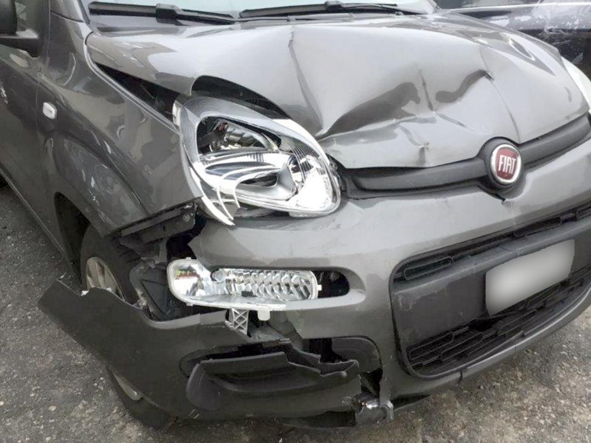 Auspufftopf, Diverse Anbauteile, Diverse Gebrauchspuren, Front, Front rechts, Frontblech, Frontscheibe, Kotflügel rechts, Kühler, Motorhaube, Querträger, Radhaus vorne rechts, Scheinwerfer links, Scheinwerfer rechts, Schlossträger, Stosstange vorne