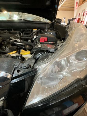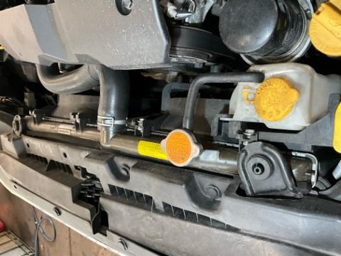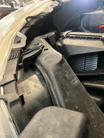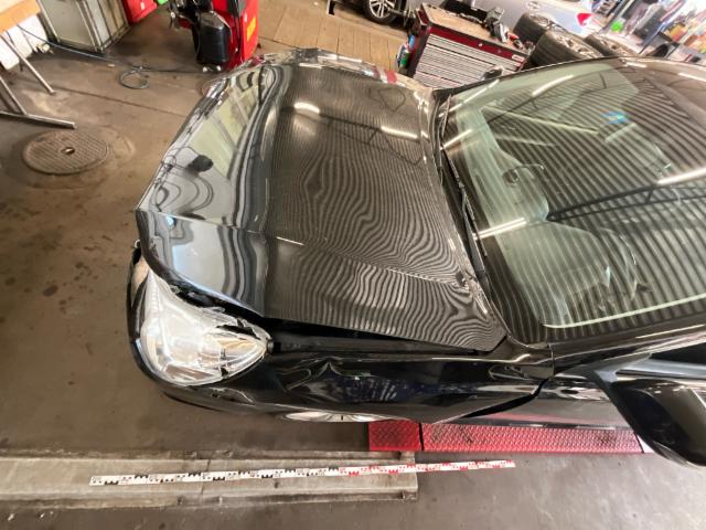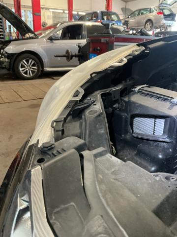 Front eingedrückt. Frontblech/Maskenblech eingedrückt. Fahrzeugvorbau verschoben.