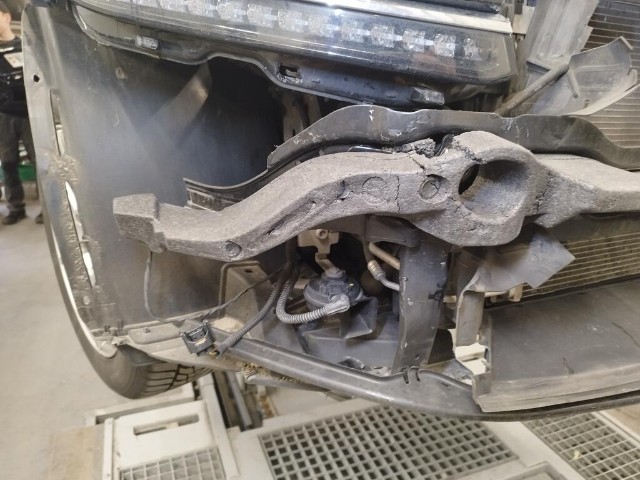 Frontblech/Maskenblech eingedrückt. Längsträger vorne rechts und links gestaucht.