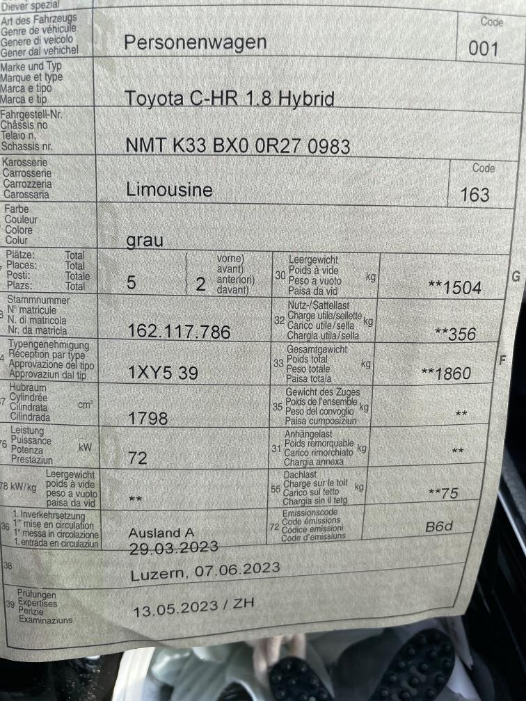 Schöner C-HR 1.8 Hybrid mit toller Ausstattung. Aussen leichte Gebrauchsspuren, Innen auch. Von Frau gefahren und leider wurde das Fahrzeugbaus zeitgründen nicht ausgeräumt. Kein Werkstatttest und Funktionstest durchgeführt. Importfahrzeug. Ab Platz, ohne Garantie. Jede weitergehende gesetzliche Gewährleistung sowie Wandelung und Minderung werden abgelehnt.
