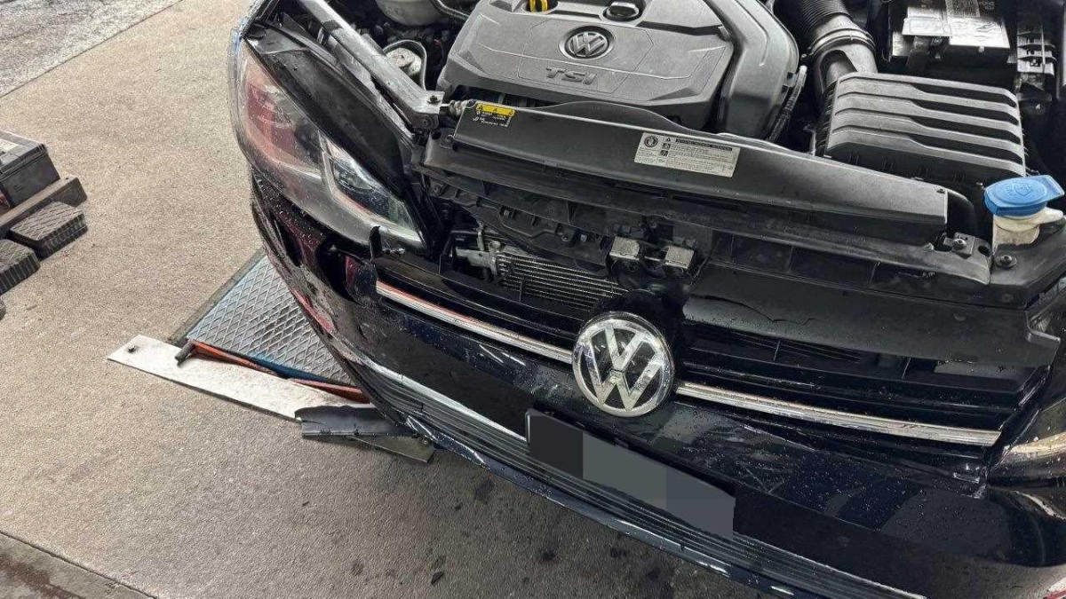 Airbag ausgelöst, Armaturenbrett, Front, Front links, Front rechts, Frontblech, Frontscheibe, Gurtstraffer ausgelöst, Klimakühler, Kofferraumboden, Kotflügel links, Kotflügel rechts, Kühler, Kühlgitter, Ladeluftkühler, Längsträger vorne rechts, Motorhaube, Querträger, Radhaus vorne links, Radhaus vorne rechts, Scheinwerfer links, Scheinwerfer rechts, Schlossträger, Stosstange vorne