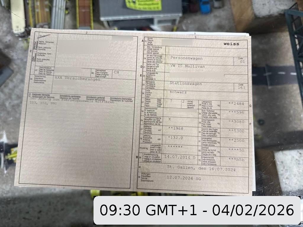 Seitenairbag für Fahrer und Beifahrer, Armlehnen vorne, Innenspiegel automatisch abblendbar, Veloursfussmatten vorne, Klimatisierungsautomatik Climatronic, Befestigungsösen im Laderaum, Pollenfilter (Staubfilter), Allradantrieb permanent, Elektrische Fensterheber vorne, 2 drehbare Sitze in der 2. Sitzreihe, Schiebefenster hinten, Reifenreparatur-Set mit Kompressor, Tagesfahrlichtschaltung mit Assistenz- fahrlicht und Coming-Home-Funktion, Nebelscheinwerfer mit Abbiegelicht, Scheiben in Dämmglas, Wegfahrsperre elektronisch, Partikelfilter und Oxydationskatalysator, Airbag Fahrer und Beifahrer, Laderaumabdeckung, Stoff-Ausstattung, Radiovorbereitung, Scheibenantenne, Ent- störung und 8 LS, 17" Scheibenbremsen vorn und 16" Scheibenbremsen hinten, Heizungsausströmer im Lade-/Fahrgastraum, Türen: Schiebetüre rechts, Heckklappe, Multifunktionslenkrad mit Telefon- bedienung, 2 Einzelsitze vorne, Licht: Nebelschlussleuchte, Digital Uhr, Berganfahrassistent, Drehzahlmesser, Window-Kopfairbags, Aussenspiegel rechts und links beheizbar und elektrisch verstellbar, Sonnenschutzrollos für Seitenfenster im Fahrgastraum, Kombiinstrument 'Premium' und Multi- funktionsanzeige (MFA) mit colour-TFT- Display, Stossstangen, Aussenspiegel und Türgriff in Wagenfarbe, Sequentielles 7-Gang-Getriebe DSG mit Automatikfunktion, 3-Punkt-Sicherheitsgurte auf allen Plätzen, Abgedunkelte Seiten- und Heckscheibe, Steckdose 12V, Heckscheiben-Wisch-/Waschanlage, Teppichboden vorne und hinten, Elektronisches Stabilitäts-Programm (ESP), Leuchtweitenregulierung von innen, ISOFIX Kindersitzvorrichtung, Abschliessbares Handschuhfach, Uni-Lackierung, Assist: Ultraschall-Einparkhilfe vorn und hinten, Kartentaschen an den Rückenlehnen, Kreuzstützen für Vordersitze verstellbar, Licht: Drittes Bremslicht, Elektronische Differentialsperre (EDS), Zentralverriegelung mit Fernbedienung, Regensensor für Scheibenwischer vorne, Dachlüfter im Laderaum, Frontscheibe mit Dämmglas, Antiblockiersystem (ABS), Servolenkung, Rollwiderstandsoptimierte Reifen, Start/Stop-Funktion, Radio/CD RCD 310, DAB+, Vordersitze höhenverstellbar, Lenkrad verstellbar, Wärmeschutzverglasung, Scheibenwischer vorne mit Intervall, Leichtmetallräder (Timaru) 17J, Vordersitze heizbar, Antriebsschlupfregelung (ASR), Schiebetüre links, Lenkrad und Schalthebelgriff in Leder, 3er Sitzbank in 3. Sitzreihe, Multimedia-Schnittstelle für iPod/iPhone, Scheibenwaschdüsen beheizt, Tempomat, Beide Make up-Spiegel beleuchtet, Heckscheibenheizung