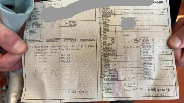 Front eingedrückt. Deichsel deformiert.