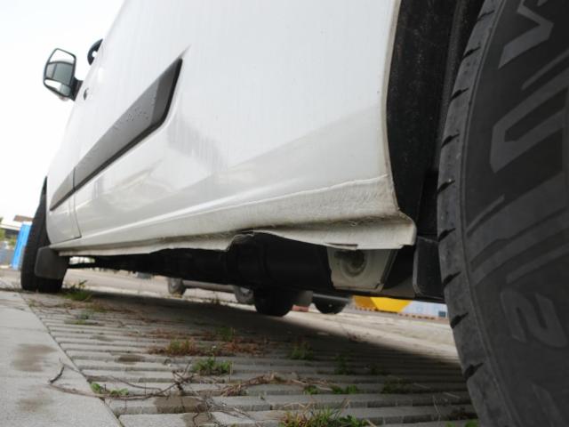 Schweller rechts ist eingedrückt. Tür hinten rechts ist eingedrückt.