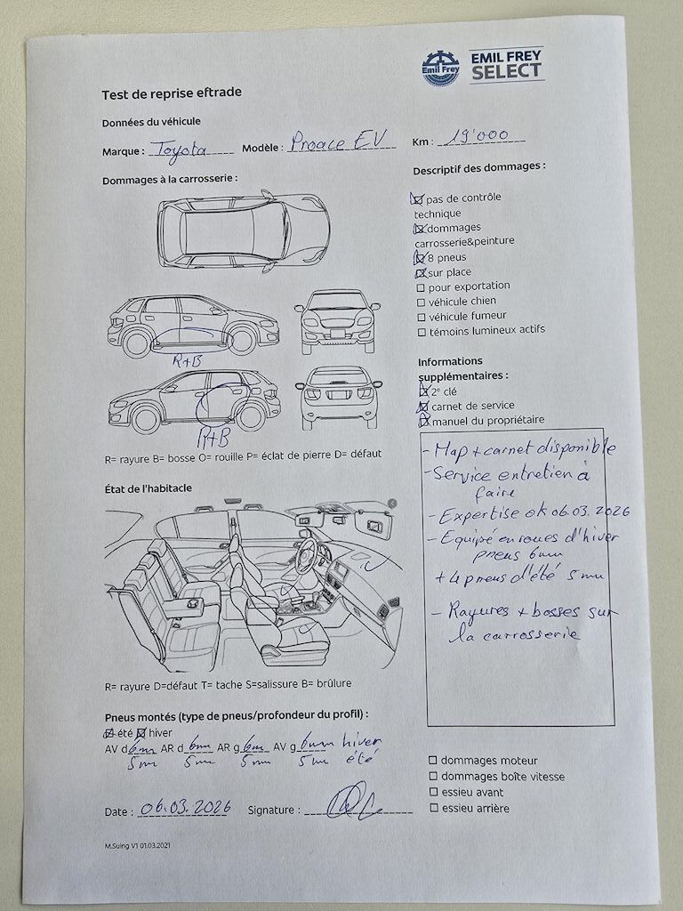 2 clésMap + carnet disponibleService entretien à faireExpertise ok 06.03.2026Equipé en roues d'hiver pneus 6 mm+ 4 pneus d'été 5 mmFreins avant 70 %Freins arrière 70 %Rayures et bosses sur la carrosseriePas de contrôle technique (essai en roues ) effectué