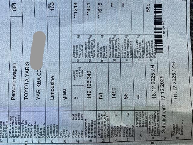 Airbag Fahrer und Beifahrerseite Sitzheizung vorne Elektrische Fensterheber vorne + hinten Aussenspiegel elektrisch verstellbar und heizbar Seitenairbag Fahrer und Beifahrerseite Zentralverriegelung mit Fernbedienung Höhenverstellbare Vordersitze Lederlenkrad Mittelarmlehne vorne Innenspiegel automatisch abblendbar Kopfairbag vorne und hinten Regensensor Leichtmetallfelgen 16" Lederschaltknauf Audiofernbedienung am Lenkrad Bodenteppiche Lenkrad beheizbar ABS und EBV Elektr. Bremskraftverteilung inkl. BA Stabilitätskontrolle VSC + Traktionskontrolle TRC Rückfahrkamera Adaptiver Tempomat ACC Einzeln abklappbare Rücksitzlehnen 60/40 HSA Berganfahrassistent Elektr. Lendenwirbelstütze Fahrersitz Reifendruck-Überwachungsanzeige Fernlichtassistent Smart entry-start/ Schliess- Startsystem Klimaautomatik Spurhalteassistent LKA Pre Crash System PCS LED-Scheinwerfer LED Tagfahrlicht LED Rückleuchten Start + Stopp Automatik Details siehe gültige Preisliste des Importeurs Keine Gewähr auf die Angaben der Serienausstattungen LED-Nebelscheinwerfer Verkehrsschild-Erkennungssystem Connect Apple Car Play/ Android Auto Garantie 10 Jahre/ 185'000 km Toyota Touch 3/ MP3/ Bluetooth/ DAB+