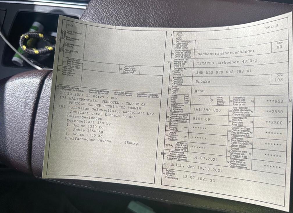 Zu verkaufen Steht ein sehr guter Autotransportanhänger 3Achser Sehr tief und stabil Elektrische seilwinde über nattosteckdose inklusive steuerung. 2550kg nutzlast 2Reifen sollte mann ersetzten Anhänger noch im einsatz beim Kunde. Am Fahrzeug wurde kein Werkstatttest gemacht (Für sichtbare oder nicht sichtbare Mängel wird nicht gehaftet) - Um Missverständnisse zu vermeiden kann das Fahrzeug auf Voranmeldung besichtigt werden, sollte Sie davon kein Gebrauch machen, dann liegt die Verantwortung bei Ihnen. - Nachdem der Höchstbietende den zuschlag erhalten hat, gibt es keine Nachverhandlungen - Das Fahrzeug muss innert 5 Tagen abgeholt werden.