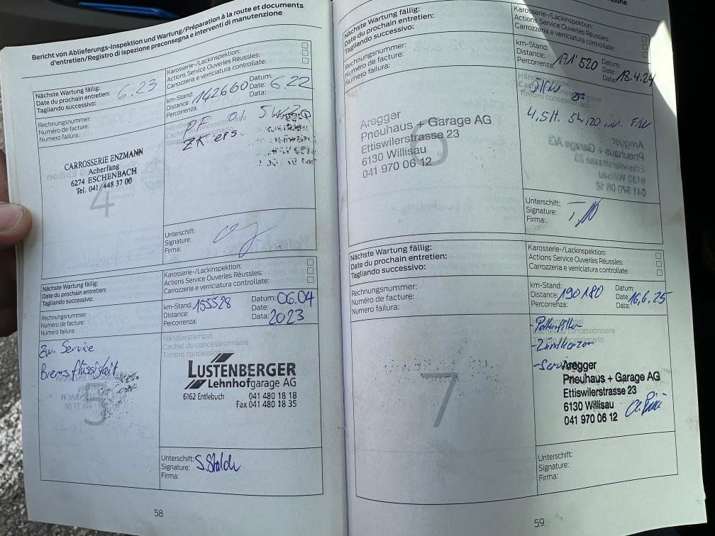 Kein Werkstatttest durchgeführt, kurze Probefahrt fuhr in Ordnung, Schäden gemäss Fotos (kleinere Beulen an Türen). Fahrzeug wird ab Platz ohne Garantie und Nachverhandlung verkauft.
