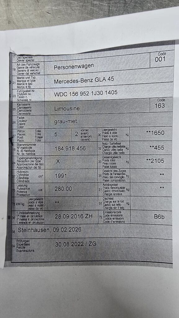 Fahrzeug ab Platz, ohne Garantie und Aufbereitung. Keine technische Prüfung (Werkstatttest) vorgenommen Gebrauchsspuren an Karosserie/Lack. Motor Getriebe Vorderachse Hinterachse Airbags ausgelöst: 0 unbekannt ( Abfallcode 16.01.04ak )