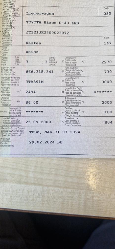 Fahrzeug fährt, bremst & schaltet. 4. Gang lässt sich nicht einlegen. Geräusch beim fahren. Fahrzeug hätte für den Aufpreis von 1000.- noch eine neue Heckklappe lackiert dabei. (nicht Teil der Auktion) Bei einer Fahrzeugbeschreibung kann immer etwas vergessen oder nicht gesehen werden. Das Risiko liegt somit vollumfänglich beim Käufer. Um Missverständnisse zu vermeiden kann das Fahrzeug auf Voranmeldung besichtigt & getestet werden. Wird davon bewusst kein Gebrauch gemacht, liegt die Verantwortung beim Käufer. Nach Zuschlag, keine Nachverhandlungen möglich. Ab Platz ohne Garantie, Wandelung und Minderung werden wegbedungen.