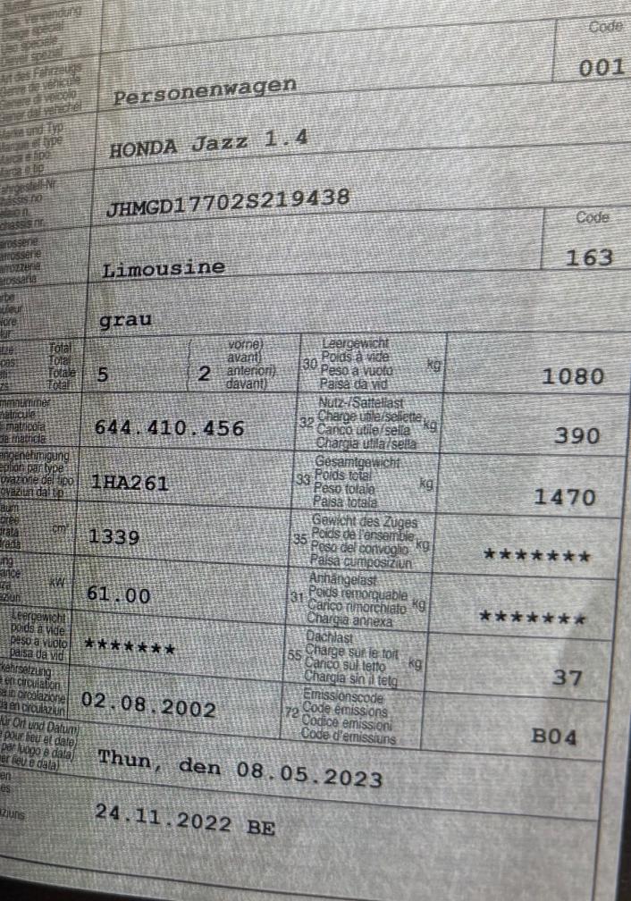 Bremsen vorne sind zu ersetzen, Rost an Schweller & Radlauf, Rostloch Hinterachse, Scheinwerfer matt. Es wurde kein ausführlicher Werkstatttest ausgeführt. Abholung innerhalb 5 Tagen nach Zuschlag, danach fällt eine Standgebühr von CHF 30.- / Tag an.
