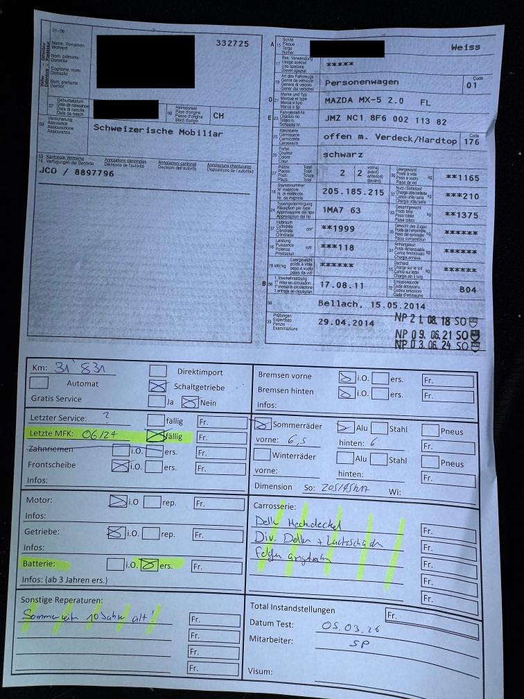 Wekstatttest vorhanden. Diverse kleine Kratzer und Beulen. Fahrzeug ab Platz und ohne Garantie.