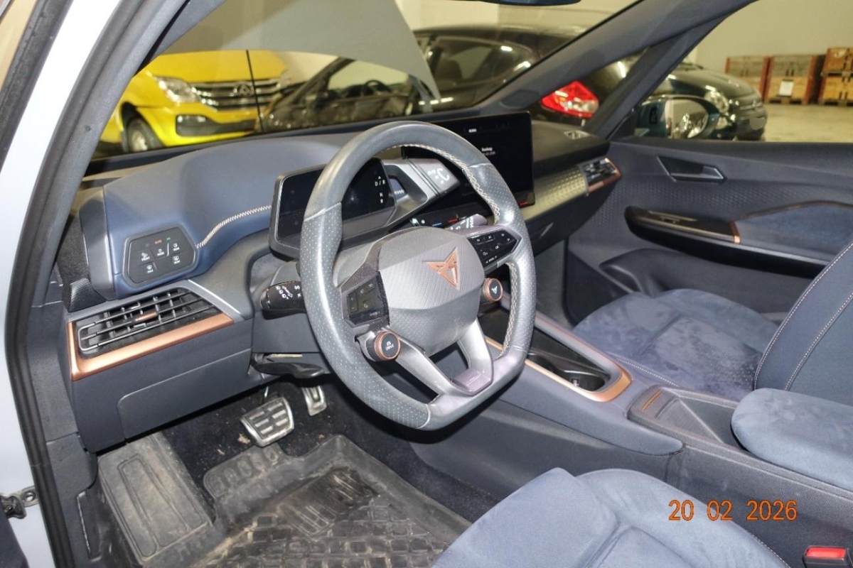 Licht: Durchgehende Full LED-Heckleuchten, Media: Mobiltelefon Freisprechanlage Bluetooth, Zentralverriegelung "Keyless-Go", Klima: 2-Zonen Climatronic, Heckscheiben-Wisch-/Waschanlage mit Intervall, Aussenspiegel elektrisch einstell-, beheiz- und einklappbar mit Beifahrerabsenkfunktion, 5.3" Full Digital Cockpit, Lenkrad: Supersportlenkrad mit Start-/ Drive Profile-Knopfsystem,beheizbar, Lenkrad: Beheizbares Ledermultifunktionslenkrad, Garantie: Cupra 12 Jahre Gewährleistung gegen Karosserie-Durchrostung (ab 1. Inv.), Garantie: Cupra 3 Jahre Lack-Gewährleistung (ab 1. Inv.), Licht: Drittes Bremslicht, Garantie: Cupra Garantie Batterie- Gewährleistung 8 Jahre oder 160’000 KM auf 70% Batterieleistung. (ab 1. Inv.), Airbag: Kopfairbags vorne und hinten, Assist: Tiredness detection (Müdigkeitserkennung), Ladekabel (Mode 3), Gurtkontrolle, ABS, EBV elektronische Bremskraft-verteilung, Assist: Einparkhilfe vorne und hinten mit optischer Anzeige, Sitze: Mittelarmlehne vorne, Sitze: Fahrersitz höhenverstellbar, Sitze: Kindersitzverankerung ISOFIX hinten, Aussenspiegel in Cosmo Grey, Türgriffe in Wagenfarbe, Sonnenblende Fahrer und Beifahrerseite mit beleuchtetem Spiegel, Seitenschweller, Getriebe: 1-Gang Automatik, Lackierung: Uni-Lackierung, Räder: Tool Kit 19'' und 20'', Dreipunkt-Automatiksicherheitsgurte auf allen Plätzen, Media: 2 USB C Anschlüsse hinten und vorne, Bordwerkzeug, Media: DAB+ (Digital Audio Broadcasting), Media: CUPRA Connect Safety & Services für Navigationssystem, Nebelschlussleuchte, Assist: Regen-/Lichtsensor, Media: CUPRA Connect Online Infotainment für Navigationssystem, Airbag: Airbag Fahrer und Beifahrer, Elektronisches Stabilitäts-Programm (ESP) mit Reifendruckkontrolle, Brems- assistent (BAS) und Sperrdifferential, Assist: Ausweichunterstützung / Abbiegeassistent, Sitze: CUPRA Sport Schalensitze in Textil, schwarz "SEAQUAL", Servolenkung geschwindigkeitsabhängig, Assist: Front Assist, Airbag: Airbag Beifahrer deaktivierbar, Wärmeschutzverglasung, Heckspoiler, Media: 5 Lautsprecher, Airbag: Seitenairbags für Fahrer und Beifahrer, Sitze: Geteilt abklappbare Rücksitzlehne 1/3 - 2/3, Wegfahrsperre elektronisch, Licht: LED-Blinker, Media: 12" Infotainment (MIB3), Heckscheibenheizung, Media: CUPRA FullLink, Pollenfilter (Staubfilter), Assist: Lane assist (Spurhalteassistent), Licht: Full LED-Scheinwerfer für Abblend-und Fernlicht und Coming Home Funktion inkl. Welcome Zeremonie, Heckdiffusor, Klima: Elektrische Luftzusatzheizung, Licht: LED-Nebelscheinwerfer, Ambiente Innenraumbeleuchtung "Multicolor" mit 6 Farben, Assist: Speed limiter, Innenspiegel automatisch abblendbar, Ladekabel für Haushaltssteckdose (Mode 2), Garantie: Cupra Garantie 2 Jahre ohne Kilometerbegrenzung (ab 1. Inv.), Räder: Alufelgen 7.5J x 19", "TYPHOON" 31/1 Machined in Sport Black (215/50 R19), CUPRA Drive Profile mit "driving experience button" Range, Comfort, Performance, CUPRA, Individual