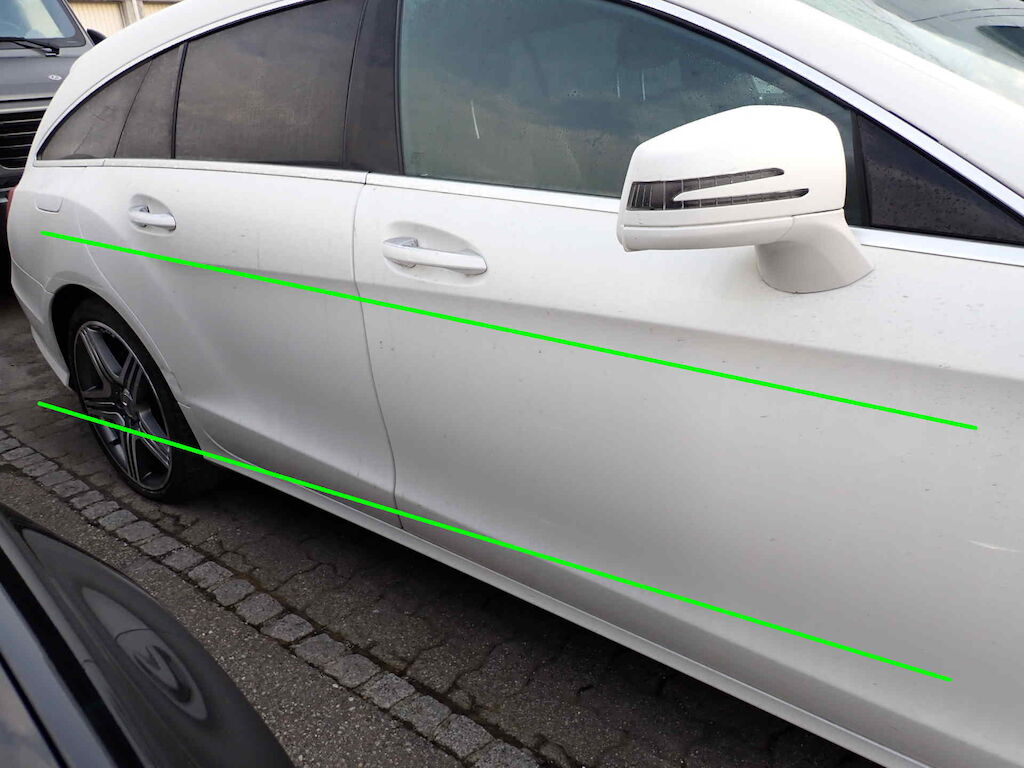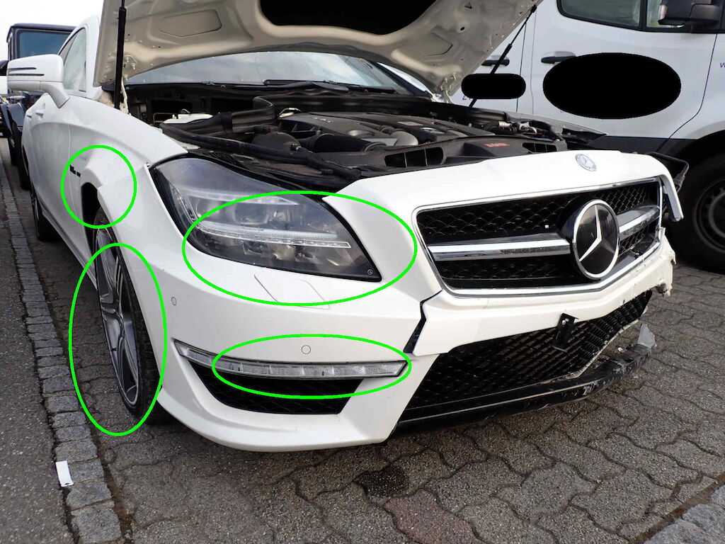 Kollision vorne links, rechts und ganze rechte Seite.Der Motor wurde nicht gestartet - möglicher Oelaustritt!Diverse kleinere Gebrauchsspuren rund um das FahrzeugDas Fahrzeug wurde nass und schmutzig besichtigt!Vorschaden:Steinschlag Frontscheibe