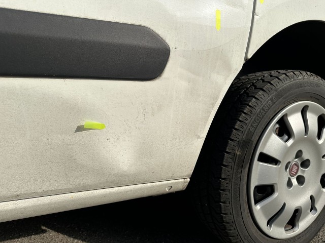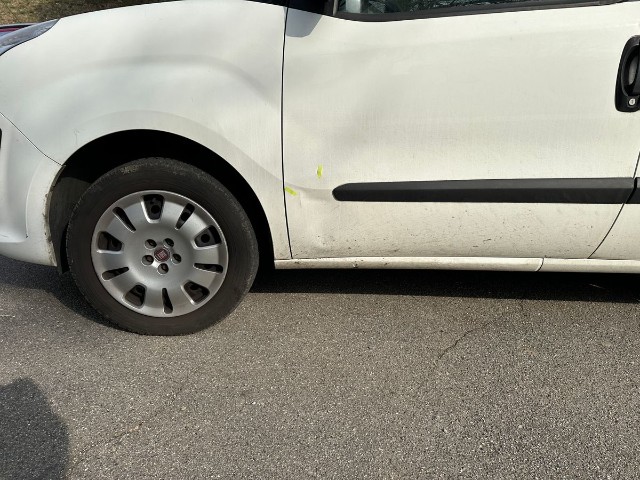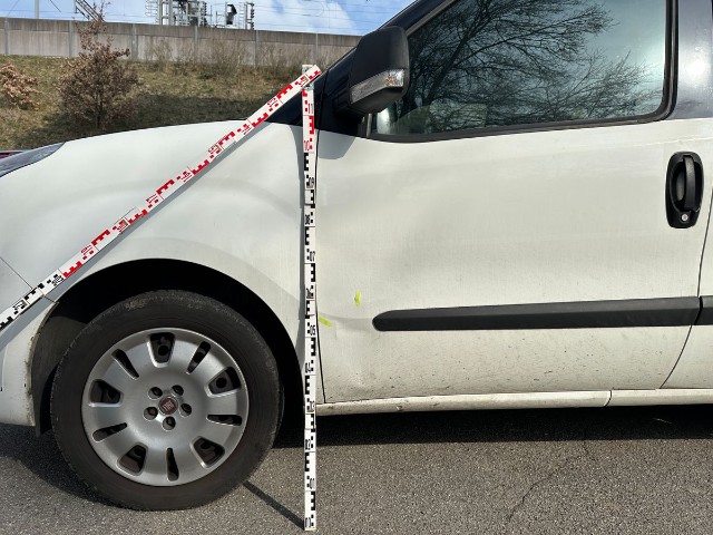 Beschädigung der linken Seite Türe vorne, Türe hinten, Seitenwand.