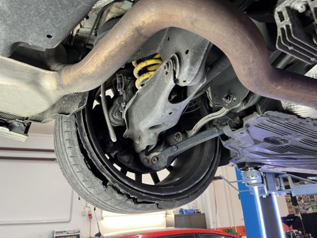 Aufhängungsteile vorne links beschädigt. Risiko Vorderachse. Risiko Hinterachse. Risiko Lenkung.