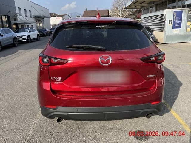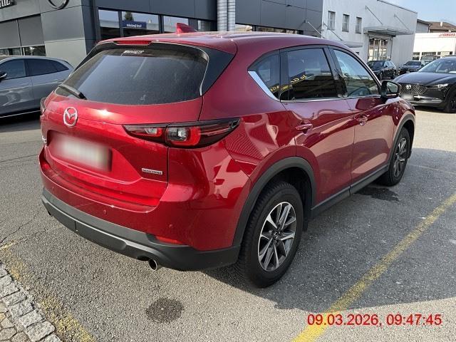 3-Punkt-Sicherheitsgurte auf allen Plätzen, Airbag: Airbag Fahrer und Beifahrer, Airbag: Seitenairbags vorne, Airbag: Vorhang vorn-hinten, Alarmanlage, Assist: Adaptive Geschwindigkeitsautomatik MRCC (Mazda Radar Cruise Control), Assist: Antiblockiersystem (ABS), Assist: Antriebsschlupfregelung (ASR), Assist: City-Notbremsassistent SCBS mit Fussgängererkennung, Assist: Dynamische Stabilitätskontrolle DSC und Traktionskontrolle TCS, Assist: Einparkhilfe mit Parksensoren vorn und hinten, Assist: Elektronische Parkbremse mit Auto-Hold-Funktion und Berganfahrhilfe, Assist: Pre-Crash Safety mit aktivem Bremseingriff SBS (Smart Brake Support), Assist: Rückfahr-Querverkehrs-Notbremsassistent RCTA (Rear Cross Traffic Brake), Assist: Rückfahrkamera, Assist: Spurhalteassistent LAS (Lane-keep Assist System) mit aktiver Lenkunterstützung, Assist: Spurwechselassistent (BSM, Blind Spot Monitoring) mit Totwinkelwarner, Assist: Stauassistent (CTS, Cruising &, Assist: Tempomat, Aussenspiegel elektrisch verstellbar, beheizbar und automatisch einklappbar, Aussenspiegel in Wagenfarbe, Blenden im Seitenfensterbereich in Brilliant Black, Bordcomputer, Dachheckspoiler in Wagenfarbe, Drehzahlmesser, Dunkel getönte Scheiben hinten (Privacy Glass), Elektrische Fensterheber vorn und hinten mit Automatikfunktion, Fahrwerk: G-Vectoring Control Plus, die Fahrdynamikregelung von Mazda, Fahrwerk: Mi-Drive (Mazda Intelligent Drive Select) mit Sportmodus, Fahrwerk: Mi-Drive (Mazda Intelligent Drive Select) mit Sportmodus und Offroad-Modus, Garantie: Mazda Garantie 3 Jahre oder 100'000 km (ab 1. Inv.), Getriebe: 6-Stufen-Automat sequentiell, Heckscheiben-Wisch-/Waschanlage, Innenspiegel mit automatischer Abblendung, Isofix-Kindersitzverankerungen (2x), Karakuri-Gepäckraumabdeckung, Katalysator geregelt, Klima: 2-Zonen-Klimaautomatik mit Ventilation hinten, Kühlergrill in Brilliant Black, LED Innenraumbeleuchtung, Lackierung: Uni-Lackierung, Lederlenkrad und -schaltknauf, Lenkrad: Lenkrad längs- und höhenverstellbar, Lenkrad: Lenkradschaltwippen, Lenkrad: Multifunktionslenkrad, Licht: Adaptives Matrix-LED-Lichtsystem ALH (Adaptive LED Headlight) inkl. Fernlichtautomatik, Licht: Drittes Bremslicht, Licht: LED-Lichtsignatur vorn und hinten, Licht: LED-Rückleuchten, Licht: LED-Tagfahrlicht integriert in Scheinwerfer, Licht: Lichtautomatik, Licht: Nebelschlussleuchte, Licht: Scheinwerfer mit Coming-/Leaving-Home-Funktion, Media: 2 USB vorne und hinten, Media: Apple CarPlay und Android Auto, Media: Audiosystem mit DAB+-Radio, 2x USB, AUX- und 12V-Anschluss, Media: Bluetooth für Mobiltelefone und Audiogeräte, Media: Head-up-Display mit Projektion auf die Windschutzscheibe, Media: Mazda Connect mit 8''- Touchscreen, Media: Multi Commander HMI auf der Mittelkonsole, Media: MyMazda App, Media: Navigationssystem, Mittelarmlehne hinten mit 2 Getränkehaltern, Motor-Startknopf, Paket: Tech Pack, Paket: Winter pack, Polster: Stoff-Ausstattung, Räder: Reifendruckkontrollsystem, Räder: Reifenreparatur-Set (Tire Fit), Scheibenwischer mit Regensensor, Servolenkung geschwindigkeitsabhängig, Shark-Fin-Antenne in Wagenfarbe, Sitze: Fahrersitz mit einstellbarer Lendenwirbelstütze, Sitze: Rücksitzlehnen 40 : 20 : 40 abklappbar (ebene Ladefläche), Sitze: Rücksitzlehnen 40 : 20 : 40 abklappbar mit einem Handgriff abklappbar (Karakuri), Sitze: Rücksitzlehnen in der Neigung verstellbar, Sitze: Vordersitze höhenverstellbar, Wegfahrsperre elektronisch, Zentralverriegelung mit Fernbedienung, i-stop, das intelligente Stopp-Start-System von Mazda