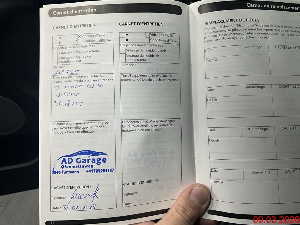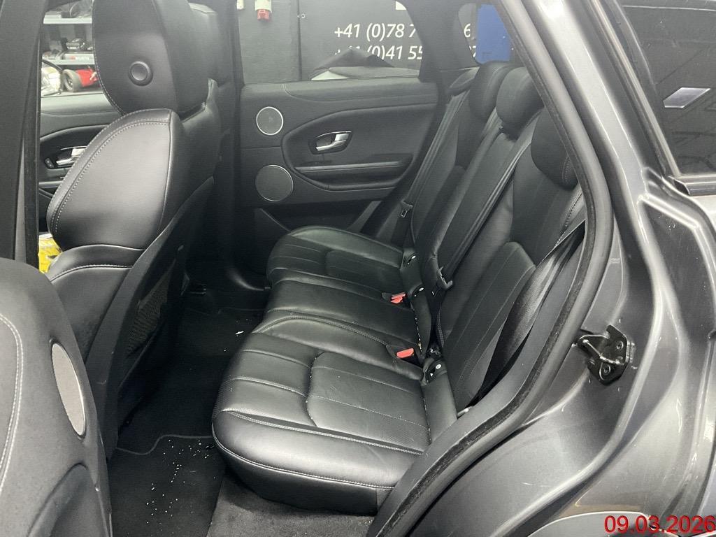 Seitenaufprall-Schutzsystem, Innenspiegel automatisch abblendbar, Blinker in Aussenspiegel, Park Distance Control vorne und hinten, 3-Punkt-Sicherheitsgurte auf allen Plätzen, Diebstahlwarnanlage, Ambientebeleuchtung, Abschliessbare Radschrauben, Höhenverstellbare Gurten vorne, Aussenspiegel in Wagenfarbe, Scheibenwischer vorne mit Intervall, Media: Navigationssystem, Mittelarmlehne vorne, Beleuchtetes Handschuhfach, Dynamische Stabilitätskontrolle (DSC), Licht: Abblendautomatik, Licht: Nebelschlussleuchte, USB-Anschluss, Elektrische Fensterheber vorne + hinten, Klima: 2-Zonen-Klimaautomatik, Türgriffe aussen in Wagenfarbe, Mittelarmlehne hinten, Fussraumbeleuchtung, Zentralverriegelung mit Fernbedienung, 12 Volt-Steckdose im Laderaum, Adaptives Bremslicht, Assist: Bergabfahrhilfe (Hill Descent Control, HDC), Ausführung 5 Sitzplätze, Fahrwerk: Terrain Response, Radio/CD-Player mit MP3, Anhänger Stabilisierungkontrolle TSA, Assist: Elektronischer Bremskraftverteilung EBD, Assist: Warnblinkautomatik bei Vollbremsung, Ledersitze, Airbag: Seitenairbag für Fahrer und Beifahrer, ABS und ETC, Getönte Scheiben, Servolenkung geschwindigkeitsabhängig, Tageskilometerzähler, Doppel-Endschalldämpfer, Cupholder vorne, Heckscheibenheizung, Cornering Brake Control (CBC), Bremsassistent (BAS), Partikelfilter und Oxydationskatalysator, Allradantrieb permanent, Stopp-/Start-System, Fahrwerk: Torque Vectoring, Getriebe: 9-Stufen-Automat sequentiell, ISOFIX-Befestigungspunkte für Kindersitz an den äusseren Rücksitzen, Vordersitze elektrisch verstellbar 12-fach, Heckscheiben-Wisch-/Waschanlage, Leichtmetallräder im 7-Speichen-Design 18J, Radiovorbereitung, Scheibenantenne, Ent- störung und 8 LS, Räder: Reifenreparatur-Set (Tire Fit), Start-/Stop-Knopf, Wassertemperaturanzeige, Beide Make up-Spiegel beleuchtet, Wegfahrsperre elektronisch, Multifunktionslenkrad, Reifendruck-Kontrollanzeige, Bluetooth-fähiges Telefonsystem, Lenkrad längs- und höhenverstellbar, Licht- und Regensensor, Bordcomputer, Assist: Elektronische Parkbremse, 3 Kopfstützen hinten, Lackierung: Uni-Lackierung, Sitze: Rücksitzlehne geteilt abklappbar, Airbag: Window-Kopfairbags, Mittelkonsole mit Ablagefach, Airbag: Airbag Fahrer und Beifahrer, Lenkrad und Schalthebelgriff in Leder, Tempomat, Automatische Umluftkontrolle, Teppichfussmatten, Aussenspiegel rechts und links beheizt, elektrisch verstell- / und einklappbar, Überroll-Schutzsystem, Digital Uhr, Spurverlassenswarnung, Xenon-Scheinwerfer mit Scheinwerfer- reinigungsanlage, autom. Leuchtweiten- regulierung und LED-Tagfahrlicht, Befestigungsösen im Laderaum, Aluminium-Applikationen, Airbag: Knie-Airbag für Fahrer, Media: Touchscreen, Dach in Metallic, Licht: Drittes Bremslicht, Laderaumabdeckung, Laderaumbeleuchtung, Drehzahlmesser, Pollenfilter (Staubfilter), Dachhimmel in Cirrus, 12-Volt-Steckdose vorne, Heckspoiler, Gurtstraffer vorne