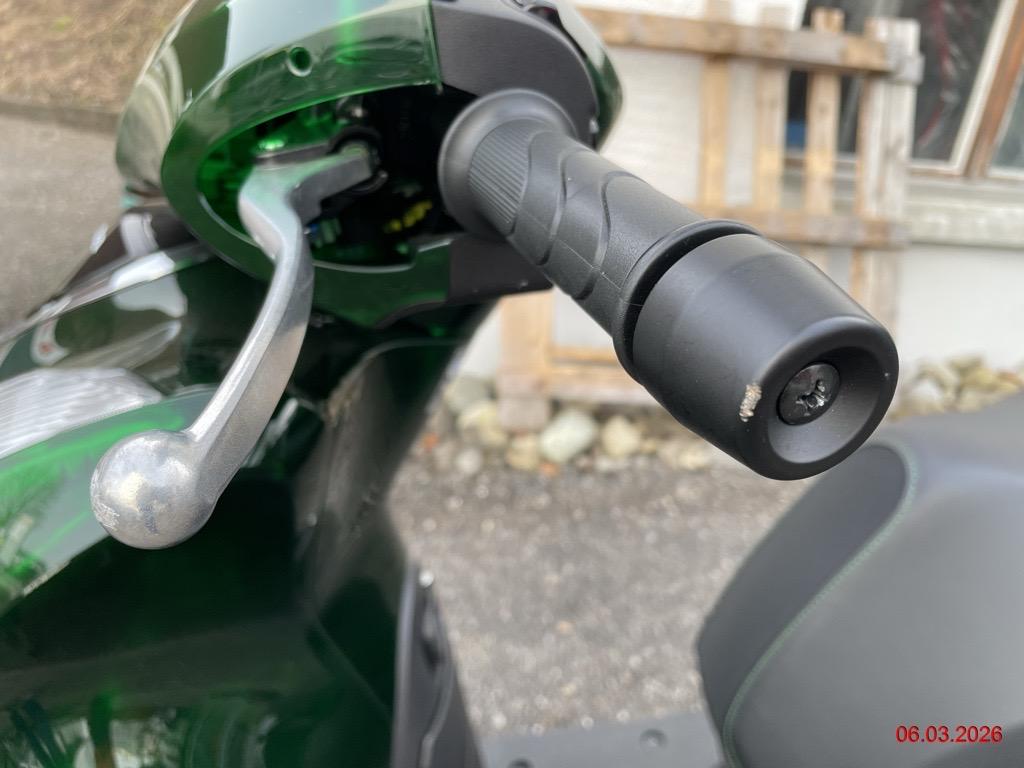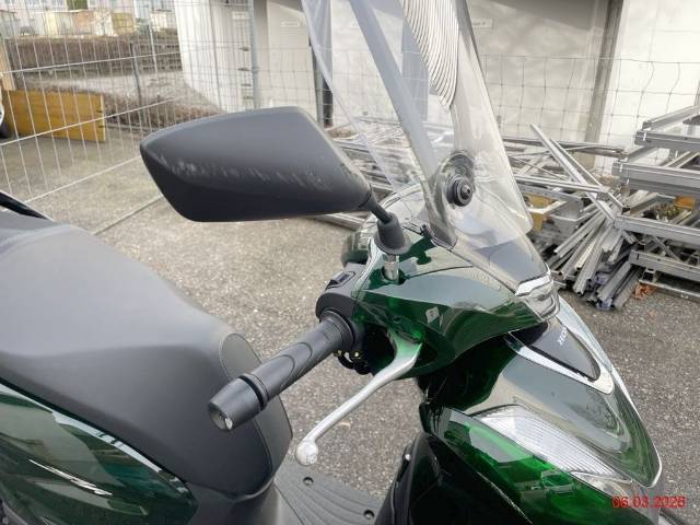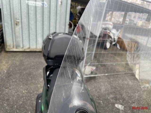 Beschreibung der Schäden: rechte Seite diverse Kratzer, Top-Case zerkratzt, Aufnahme Top-Case verbogen, Rad hinten steht schräg zum Schutzblech (Roller fährt sich komisch, Risiko Rahmen), linke Seite diverse Kratzer Motor läuft