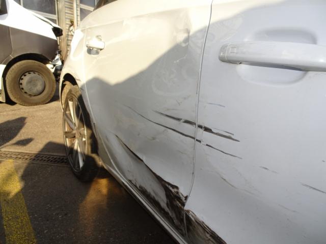 Rechte Seite beschädigt. Anstoss rechts im Bereich der A-Säule. Anstoss rechts im Bereich der B-Säule. Anstoss rechts im Bereich der C-Säule. Schweller rechts ist eingedrückt. Tür vorne rechts ist eingedrückt. Tür hinten rechts ist eingedrückt.