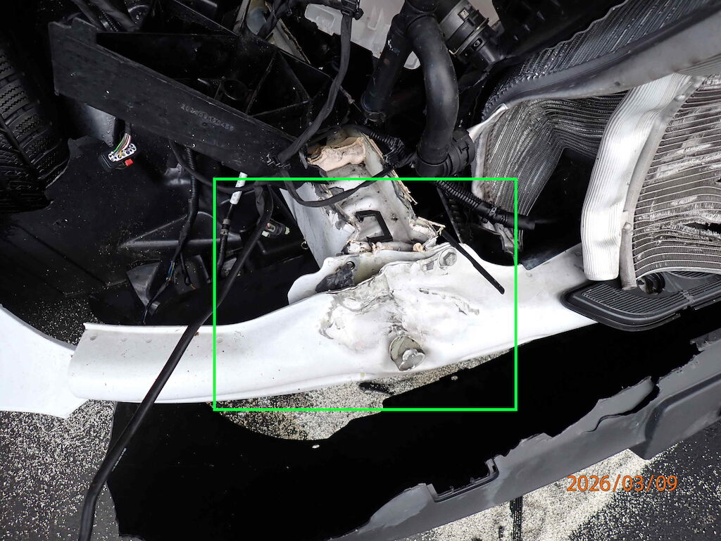 Scheinwerfer VL + VR, Frontstossfänger, Motorhaube, Kühler vorne, Motor, diverse Verkleidungen Front, Spritzwand VR, DPF, längsträger VR, Türe VR, Fahrwerkr VR beschädigt Fahrer + Beifahrerairbag ausgelöst, Alle Gurte ausgelöst Motor Getriebe Vorderachse Hinterachse Airbags ausgelöst: 2 unbekannt ( Abfallcode 16.01.04ak )