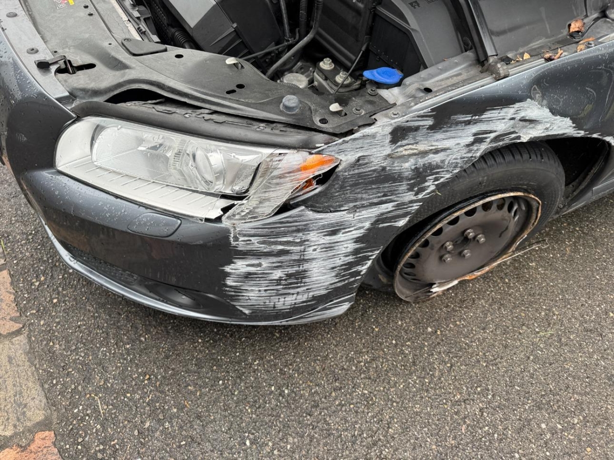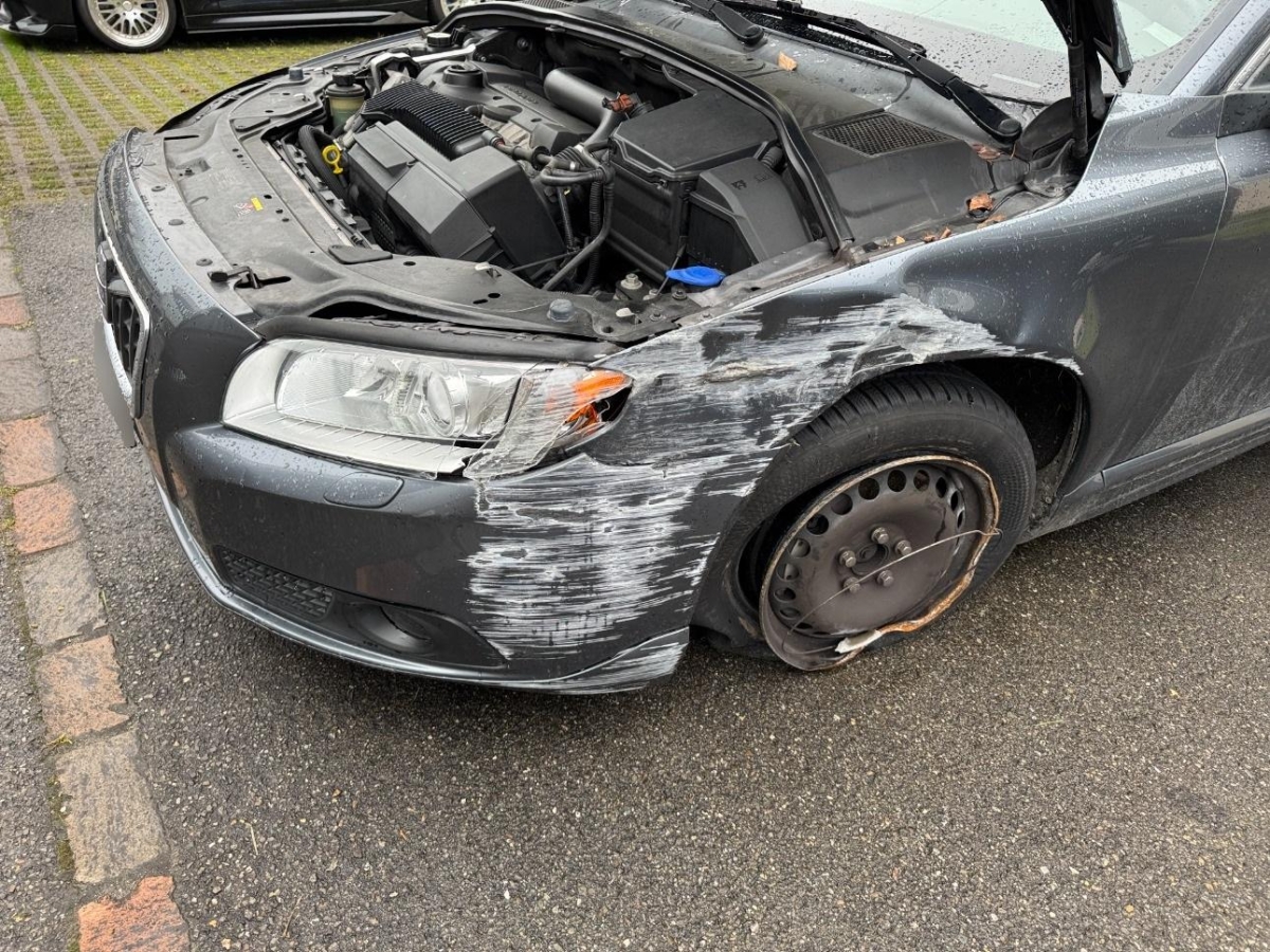 Auspuffanlage, Aussenspiegel links, Diverse Anbauteile, Kotflügel links, Motorhaube, Rad vorne links, Radaufhängung vorne links, Scheinwerfer links, Seite links, Seitenwand links, Stossstange hinten, Stosstange vorne, Türe hinten links, Türe vorne links