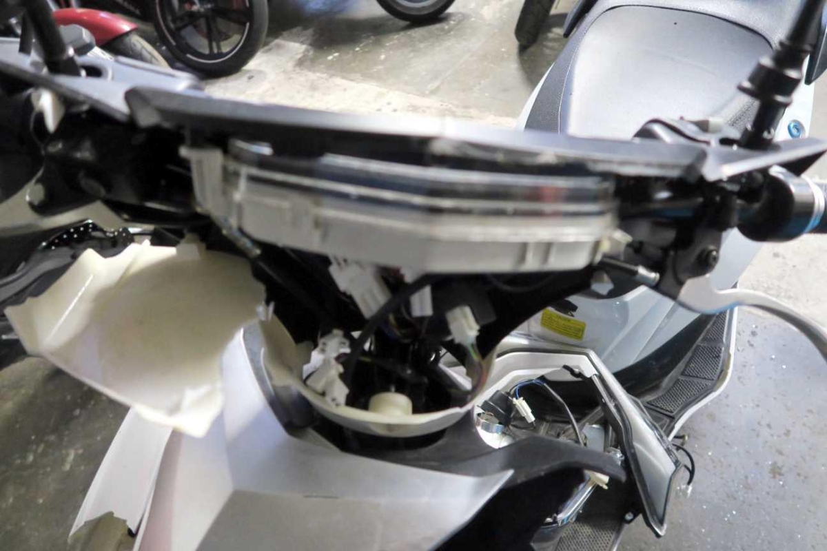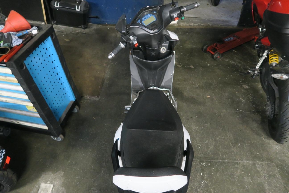 Armaturen, Auspufftopf, Aussenspiegel links, Aussenspiegel rechts, Diverse Anbauteile, Front, Fussraster links, Fussraster rechts, Gabelholm, Griff links, Griff rechts, Heck, Heckverkleidung, Lenker, Rad vorne, Rahmen, Scheinwerfer, Schutzblech hinten, Schutzblech vorne, Seite links, Seite rechts, Sitz, Topcase, Verschalungen hinten, Verschalungen links, Verschalungen rechts, Verschalungen vorne, Windschutzscheibe