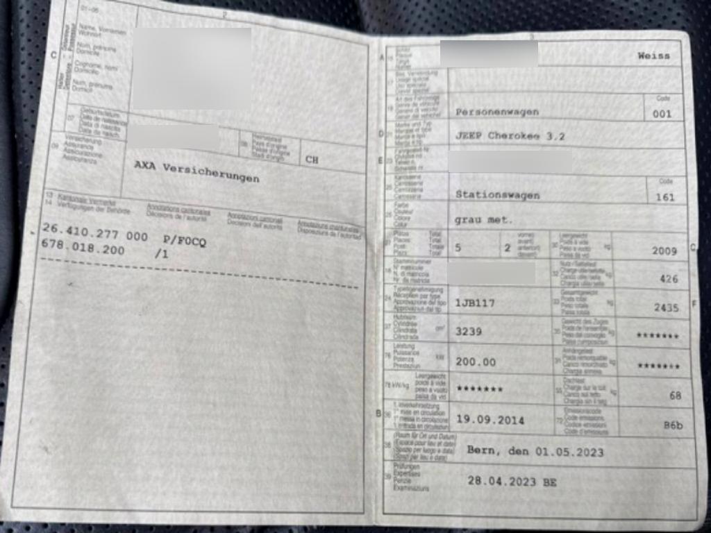 Radiofernbedienung, Licht: Adaptives Bremslicht, Fahrersitz elektrisch verstellbar, Schalthebelknauf aus Leder, Wegfahrsperre elektronisch, Aussenspiegel mit Memory Funktion, Park Distance Control vorne und hinten mit Rückfahrkamera, Airbag: Knie-Airbag für Fahrer, Thorax Seitenairbag für Fahrer und Beifahrer, Sitze: Mittelarmlehne hinten, Bremsassistent (BAS), Beide Make up-Spiegel beleuchtet, Katalysator geregelt, Räder: Reifendruck-Kontrollanzeige, Räder: Reserverad, Airbag: Window-Kopfairbags, Gepäcknetz(e), Aktive Kopfstützen, Zentralverriegelung mit Fernbedienung, Abgedunkelte Seiten- und Heckscheibe, Bi-Xenon-Scheinwerfer inkl. Reinigungsanlage, Innenspiegel automatisch abblendbar, Getriebe: 9-Stufen-Automat sequentiell, Licht: Drittes Bremslicht, Licht- und Regensensor, Polster: Leder-Ausstattung, Pollenfilter (Staubfilter), Lederlenkrad mit Tempomat, Licht: LED Heckleuchten, Soundsystem, Servolenkung, Sitze: Kreuzstütze für Fahrersitz elektrisch verstellbar, Antiblockiersystem (ABS), Seitenairbags hinten, Allradantrieb permanent, ISOFIX Kindersitzvorrichtung, Start/Stop-Funktion, Aussenspiegel elektrisch einklappbar, Innenleuchten LED, Elektronisches Stabilitäts-Programm (ESP), Vordersitze heizbar und belüftet, Elektronische Parkbremse, Cargo Organizer, Licht: Nebelschlussleuchte, Fahrer-Informationssystem mit Farbdisplay, Sitze: Rücksitzlehne geteilt abklappbar, Elektrische Fensterheber vorne + hinten, Heckscheibenheizung, Antriebsschlupfregelung (ASR), Dachreling silber, Cupholder hinten, Keyless Entry / -Start, Heckklappe elektrisch, Lenkrad: Lenkrad längs- und höhenverstellbar, Licht: Nebelscheinwerfer mit Abbiegelicht, Räder: 4 Leichtmetallfelgen 18J mit Pneu 225/55R18, 10 Lautsprecher, Aussenspiegel und Türgriffe in Wagenfarbe, Uconnect Multimediasystem: Uconnect Freisprecheinrichtung, Navigation inkl. Touchscreen,DAB Radio/CD, SD- Kartenansteckplatz, Ipod, MP3, AUX, USB, Jeep Gratis-Service 3 Jahre, max. 100'000 km (ab 1. Inv.), Anhänger-Stabilitätsprogramm, Lackierung: Uni-Lackierung, Cupholder vorne, Getönte Scheiben, Subwoofer, Steckdose 12V, Berganfahrassistent, Airbag: Airbag Fahrer und Beifahrer, Klima: 2-Zonen-Klimaautomatik, Laderaumabdeckung