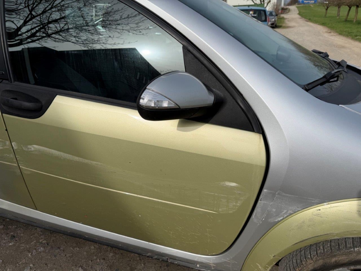 Anprall Seite rechts. Dabei wurden der Radlauf vorne, die A-Säule, die Türe vorne, die Türe hinten, die Seitenwand hinten sowie der Radlauf hinten beschädigt. WICHTIG! Kilometerangabe im Kombiinstrument stimmt nicht. Instrument wurde ersetzt durch ein Occasion Teil. KM laut Servicenachweis zirka 130`000. Kombiinstrument nicht original!!!!!
