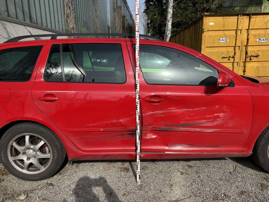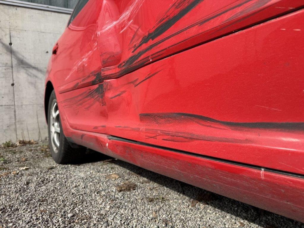 Anprall Seite rechts Dabei wurden die Türen mit Anbauteilen und das Seitenteil rechts mit Unterholm und der B-Säule rechts aufgestossen sowie deformiert und gestaucht. Aufzählungen nicht abschliessend ! Nur 1 Schlüssel und 1 Radsatz vorhanden. Div. Dellen und Lackschäden / Anrostungen sowie Gebrauchsspuren aussen und innen.