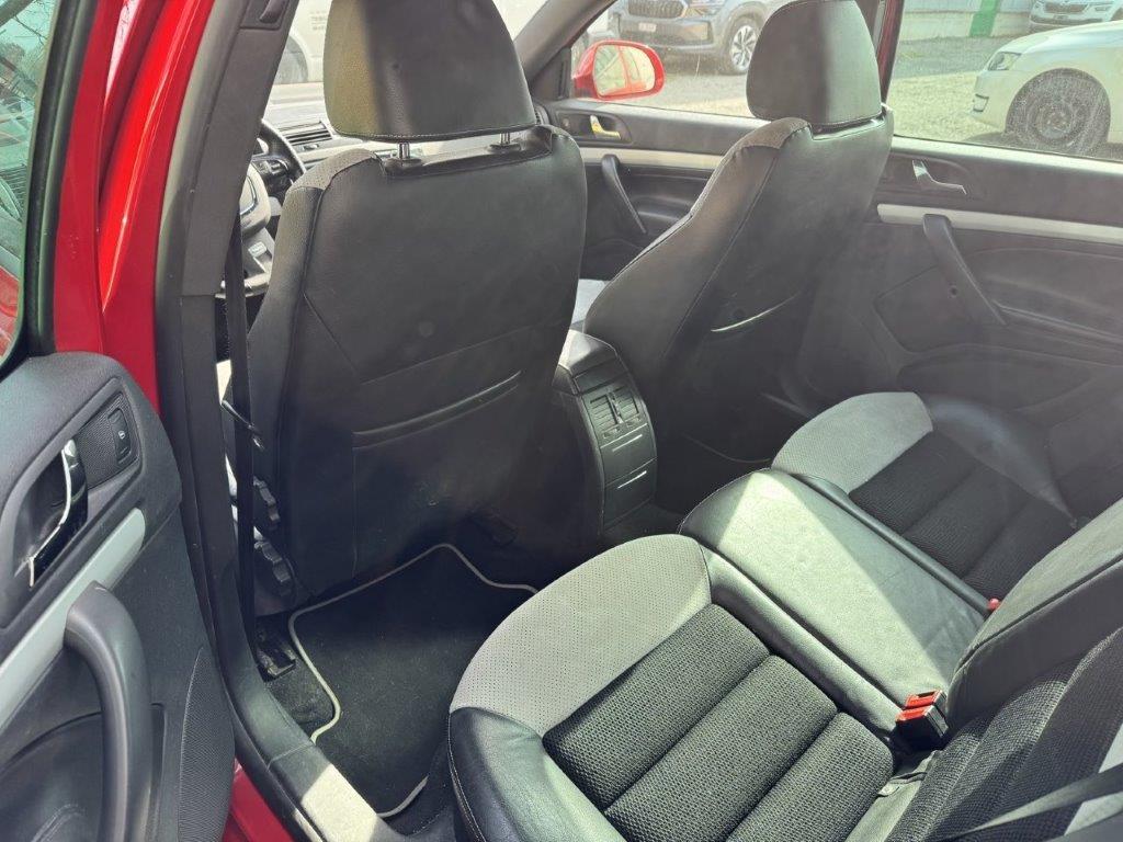 Teppichfussmatten vorne und hinten, Frontspoiler, Wartungsintervall-Anzeige, Xenon-Scheinwerfer inkl. Hochdruck- Scheinwerferwaschanlage und Leuchtweitenregulierung, Drehzahlmesser, Servolenkung, Heckscheibenheizung, Höhenverstellbare Gurten vorne, Licht: Nebelscheinwerfer, Polster: Stoff-/Leder-Ausstattung, Räder: Reifendruck-Kontrollanzeige, Ablagefach unter dem Beifahrersitz, Radio/CD-Player, Sitze: Sportsitze vorne, Sitze: Vordersitze höhenverstellbar, Antriebsschlupfregelung (ASR), Radiovorbereitung, Antenne, Entstörung und 8 LS, Sitze: Kreuzstützen für Vordersitze verstellbar, Elektrische Fensterheber vorne + hinten, Aussenspiegel rechts und links beheizbar und elektrisch verstellbar, 4 Leichtmetallfelgen 17J mit Pneu, Make up-Spiegel rechts, Tagfahrlicht, Aschenbecher und Zigarettenanzünder, Sitze: Mittelarmlehne vorne inkl. grosser Jumbo-Box (kühlbares Ablagefach), Sequentielles 6-Gang-Getriebe DSG mit Automatikfunktion, Sitze: 3 Kopfstützen hinten, Einstiegsschienen vorne, Gurtstraffer vorne und hinten, Aktive Kopfstützen, Airbag: Seitenairbags, Pollenfilter (Staubfilter), Scheibenwischer vorne mit Intervall, Assist: Elektronische Differentialsperre (EDS), Gepäcktrennnetz, Elektronisches Stabilitäts-Programm (ESP), Lenkrad-Wippschaltung (Paddles), Antiblockiersystem (ABS), Regensensor für Scheibenwischer vorne, Sportfahrwerk, Stossstangen und Aussenspiegel in Wagenfarbe, Klima: Klimatisierungsautomatik Climatronic, Cupholder hinten, Lichtwarnsummer, Park Distance Control hinten, Sportauspuffanlage, Zentralverriegelung mit Fernbedienung, Brillenablage, Drittes Bremslicht, Befestigungsösen im Laderaum, Innenspiegel automatisch abblendbar, Türgriffe aussen in Wagenfarbe, Wegfahrsperre elektronisch, Maxi-DOT Display, Make up-Spiegel links, Partikelfilter und Oxydationskatalysator, 3-Punkt-Sicherheitsgurte auf allen Plätzen, Wassertemperaturanzeige, Verchromtes Auspuffendrohr, Radio SWING mit CD-Player, MP3, Getönte Scheiben, Airbag: Airbag Fahrer und Beifahrer, Lenkrad längs- und höhenverstellbar, Frontscheibe mit Color-Band, Schalthebelknauf in Leder, Pedalerie mit Aluminiumauflage, Cupholder vorne, Schirmfach, Nebelschlussleuchte, 3 Speichen Sport-Multifunktionslenkrad für Radio, Schutzleisten in Wagenfarbe, Durchladeöffnung im Kofferraum, Lederhandbremshebel, Airbag: Window-Kopfairbags, Notrad, Heckscheiben-Wisch-/Waschanlage, Airbag: Airbag Beifahrer deaktivierbar, Steckdose im Kofferraum, Berganfahrhilfe (Hill Holder), Assist: Tempomat, Leuchtweitenregulierung automatisch, Bremsassistent (BAS), Türgriffe innen verchromt, Tageskilometerzähler, Sitze: Rücksitzlehne geteilt abklappbar, Gepäcksicherungsnetz(e) im Laderaum, Beleuchtetes Handschuhfach, Anschlussbox für Strombezug, Mittelarmlehne hinten, ISOFIX Kindersitzvorrichtung