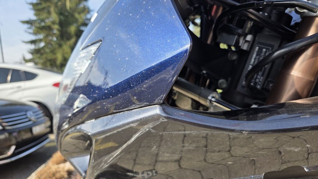Frontvershclung gebrochen, Kopfschale gebrochen, Frontschutzblech zerkratzt, div Hebel beschädigt, Rahmen li zerkratzt, Auspuff zerkratzt Motor Getriebe Vorderachse Hinterachse Airbags ausgelöst: 0 unbekannt ( Abfallcode 16.01.04ak )