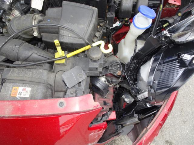 Front eingedrückt. Kotflügel vorne links eingedrückt. Motorhaube eingedrückt. Frontblech/Maskenblech eingedrückt. Radhaus vorne links eingedrückt / gestaucht. Längsträger vorne links gestaucht.