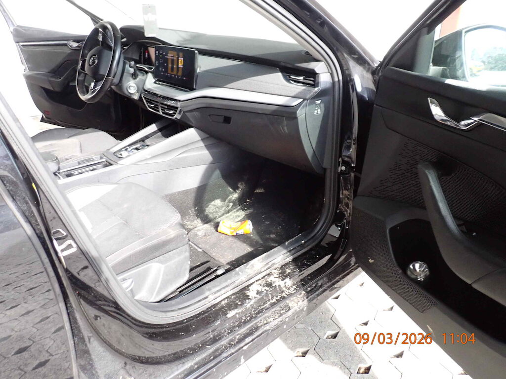 FAHRZEUGDIEBSTAHLSTOSSFÄNGER VORNE GEBROCHENSCHEINWERFER L + R GEBROCHENMOTORHAUBE / KOTFLÜGEL VR / AUSSENSPIEGEL RDACH DELLE / TÜR VL + HL BESCHÄDIGTSTOSSFÄNGER + SEITENWAND HR ZERKRATZTRADAUFHÄNGUNG VRFAHRZEUG STARK VERSCHMUTZT INNEN + AUSSEN