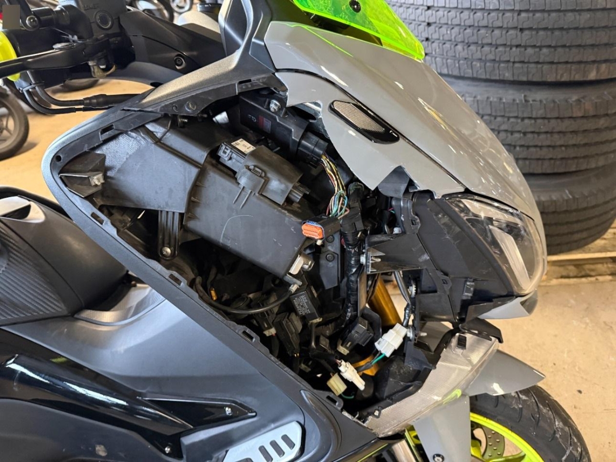 Armaturen, Auspufftopf, Aussenspiegel links, Aussenspiegel rechts, Diverse Anbauteile, Heckverkleidung, Lenker, Motorgehäuse, Rad hinten, Rad vorne, Rücklicht, Scheinwerfer, Schutzblech hinten, Schutzblech vorne, Schwinge, Seite links, Sitz, Tank, Verschalungen hinten