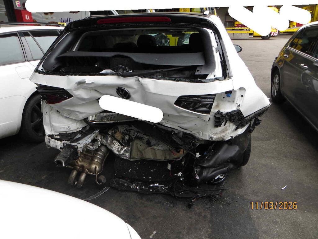 Fahrzeug unzerlegt auf Platz besichtigt Keine Schadenkalkulation erstellt <-- offensichtlicher Totalschaden Front Stossfänger Motorhaube Kühlergrill Frontscheibe Kotflügel vl + vr beide Scheinwerfer, Schlossträger, Kühlerpaket usw Heck Stossfänger, Heckblech, Heckklappe,Seitenwand li+re, Kofferboden, Längsträger, Auspuffanlage... Airbag Fahrer- Beifahrer, Knie- und beide Kopfairbag inkl. Gurtstraffer vo + hi ausgelöst Motor Getriebe Vorderachse Hinterachse Airbags ausgelöst: 5 unbekannt ( Abfallcode 16.01.04ak )