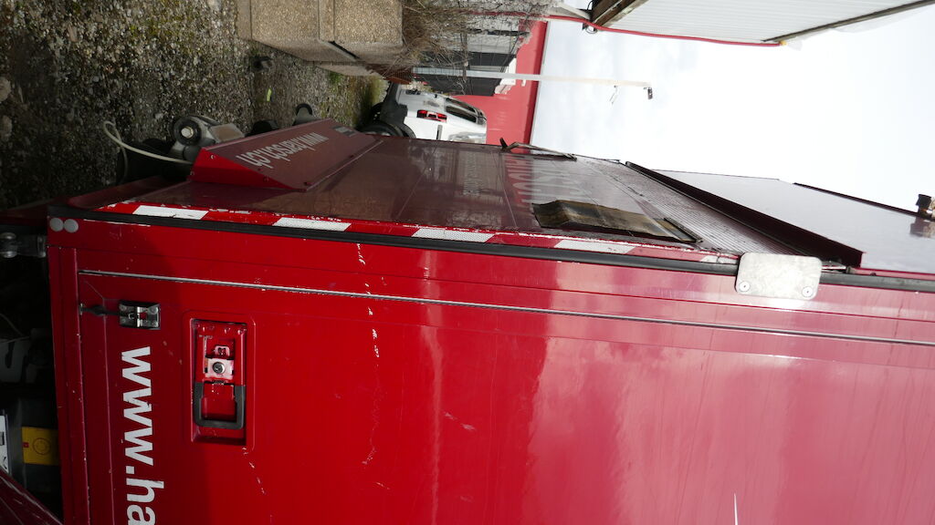 Dommages préexistants :Ridelle élévatrice déformée coté gauche, éraflures divers sur la caisse de transport.Une seule clé. Aucune garantie.