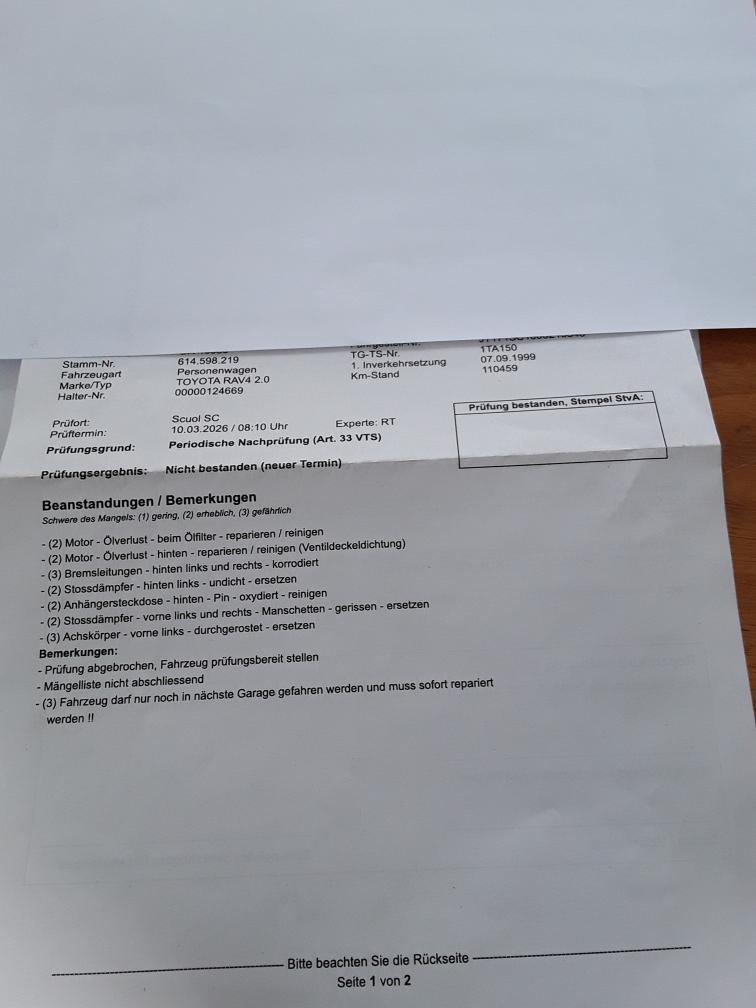 Fahrzeugmängel siehe beiliegende Mängelliste. Gebrauchsspuren, diverse Dellen siehe Bilder, Werkstatt-Test wurde nicht durchgeführt, da Beanstandungsliste vorliegt.