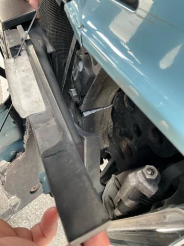 Front eingedrückt. Frontblech/Maskenblech eingedrückt. Fahrzeugvorbau verschoben.
