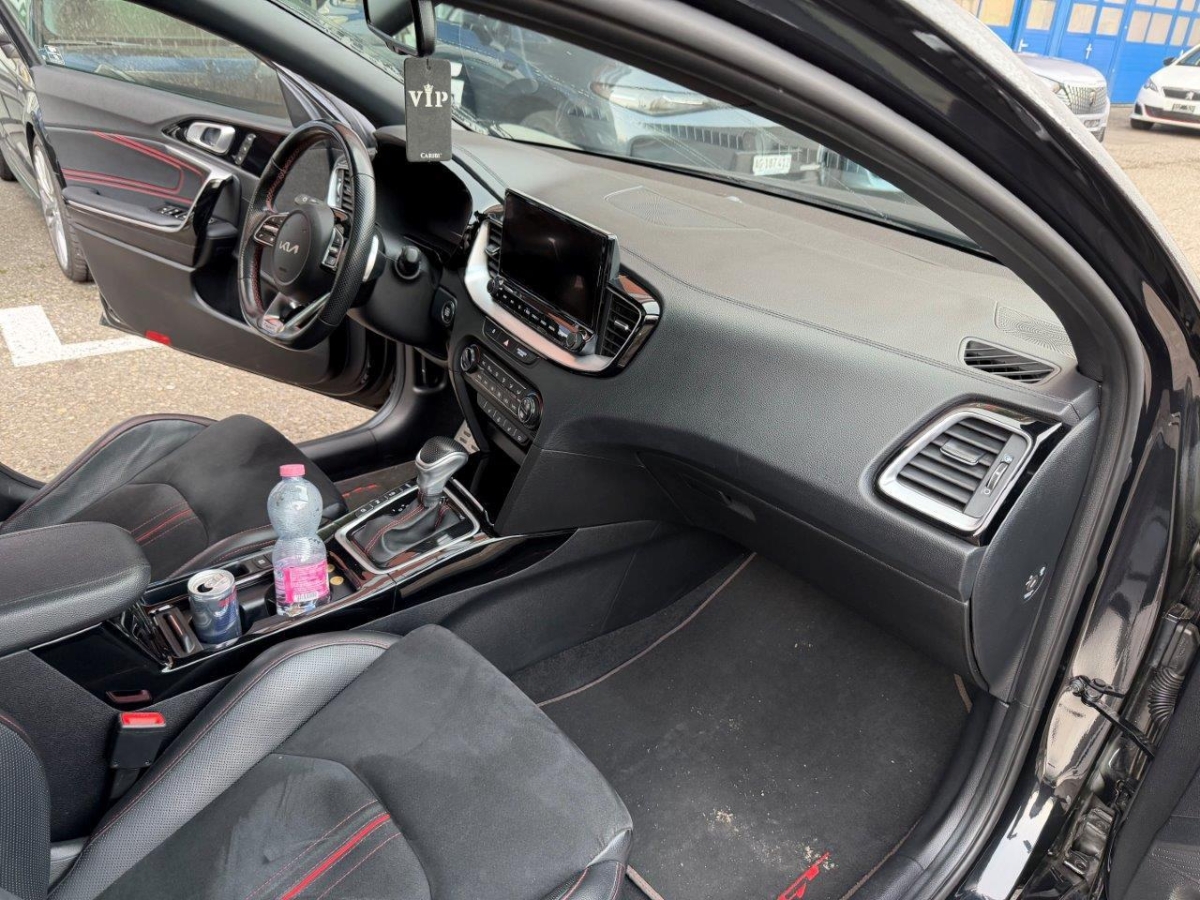 Elektrische Handbremse, Assist: Berganfahrassistent (HAC), Räder: Tire mobility kit, Media: Online-Dienste Kia Connect inkl. 7 Jahre, Lenkrad: Lenkrad höhen- und tiefenverstellbar, Sitze: ISOFIX-Kindersitzverankerung hinten, Innenrückspiegel automatisch abblendbar, Elektronisches Stabilitätsprogramm (ESC) / elektronische Traktionskontrolle (TCS), Assist: Parksensoren vorn, Assist: Rückfahrkamera, Lenkrad: Lenkradheizung, Media: USB-Ladebuchse vorn, Garantie: KIA Garantie 7 Jahre Mobilitätsgarantie (ab 1. Inv.), Licht: Tagfahrlicht vorn und hinten, Katalysator geregelt, Sitze: Höhenverstellbare Kopfstützen vorn und hinten, Heckscheibenheizung, Sitze: Fahrersitz elektrisch verstellbar mit Lendenwirbelstütze, Media: 8 Lautsprecher, Assist: Müdigkeitserkennung, Mittelarmlehne vorne mit Staufach, Servolenkung mit elektrischer Lenkunterstützung, 3-Punkt-Sicherheitsgurte an allen Sitzplätzen, vorn höhenverstellbar, Licht: Nebelschlussleuchte, Regensensor, Media: JBL Soundsystem, Antiblockiersystem (ABS) mit elektronischer Bremskraftverteilung (EBD), Assist: Autonomer Bremsassistent (BAS), Fahrzeug- und Fussgängererkennung, Elektrische Heckklappe, Lackierung: Uni-Lackierung, Start-/Stopp-Automatik, Lenkrad: Schaltwippen hinter dem Lenkrad, Assist: Ausstiegswarnung (SEW), Media: Android Auto und Apple CarPlay, Media: 10.25"-Navigationssystem, DAB+, Räder: 4 Leichtmetallfelgen 7,0 J x 17" -225/45 R17, Aluminium Sportpedale, Sonnenblende Fahrer und Beifahrerseite mit beleuchtetem Spiegel, Media: Bluetooth, Licht: LED-Scheinwerfer, Licht: Nebelscheinwerfer vorn, Licht: LED-Tagfahrlicht hinten, Aussenspiegel elektrisch verstellbar, Licht: Drittes Bremslicht, Getriebe: 7-Gang DSG, Türgriffe aussen in Wagenfarbe, Media: Induktive Ladestation für Smartphone, Assist: Geschwindigkeitsbegrenzer, Aussenspiegel elektrisch beheiz- und einklappbar, Assist: Automatische Parkhilfe, Assist: Fernlichtassistent, Assist: Totwinkel-Assistent, Klima: 2-Zonen-Klima-Automatik, Airbag: Airbag Fahrer und Beifahrer, Beifahrerairbag abschaltbar Seitenairbags vorn, Kopfairbags (Vorhang) vorn und hinten, Heckscheiben-Wisch-/Waschanlage, Sitze: Sitzheizung hinten, Räder: Reifendruckkontrollsystem (TPMS), Licht: LED-Tagfahrlicht vorn, Media: Instrumentenanzeige Supervision Digital 12.3", Wegfahrsperre elektronisch, Assist: Intelligente Tempolimitwarnung, Assist: Parksensoren hinten, Sitze: Sitzheizung vorne, Polster: Sitzbezüge Wildleder mit GT Logo, 12 V-Anschluss vorn, Beheizbare Frontscheibe, Assist: Tempomat mit Distanzassistent, Start-/Stop-Knopf mit Smart Key, Assist: Autobahnassistent, Sitze: Sitzlehne der 2. Sitzreihe umklappbar, asymmetrisch 60:40, Doppelrohrauspuffanlage, Lenkrad: Lenkrad und Schaltknauf lederbezogen, Gurtstraffer und Gurtkraftbegrenzer vorn, Assist: Stauassistent, Zentralverriegelung mit Fernbedienung, Licht: Aktives Bremslicht (ESS), Assist: Rückfahr-Querverkehrswarner, Fensterheber elektrisch vorn und hinten, Assist: Spurhalteassistent aktiv, Sitze: Fahrersitz mit Memoryfunktion, Assist: Lichtsensor