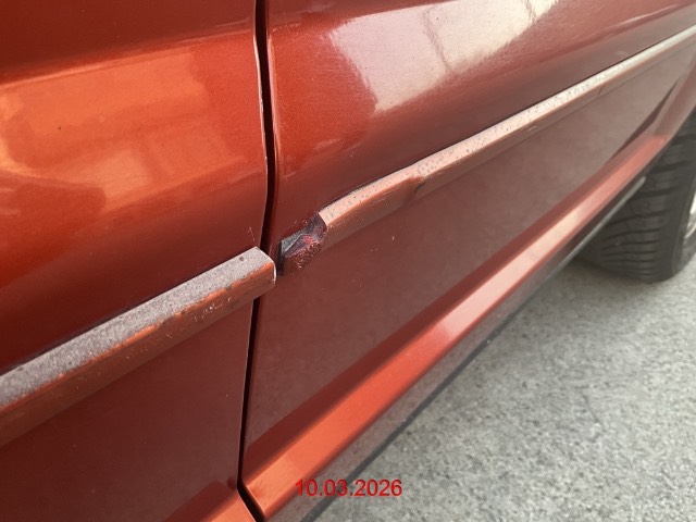 Seite links: Kotflügel, beide Türen und Seitenwand eingedrückt und zerkratzt, Stossfänger zerkratzt. Kotflügel nicht mehr lieferbar / Vorbestandene Schäden: Gebrauchsspuren