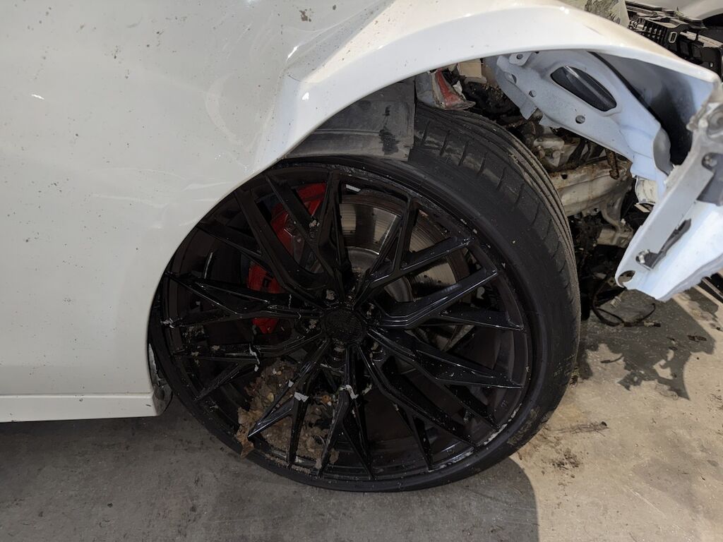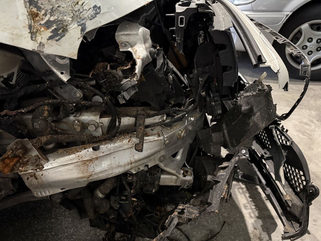 Front- und Seitenschaden links: Front rechts eingedrückt bis zur Vorderachse. Vorderachse mit Träger und Lenkung beschädigt. Beide Türen links eingedrückt und Seitenwand hinten stark eingedrückt. Aufzählung nicht abschliessend. Motor konnte nicht gestartet werden. Motor Getriebe Vorderachse Hinterachse Airbags ausgelöst: 3 unbekannt ( Abfallcode 16.01.04ak )