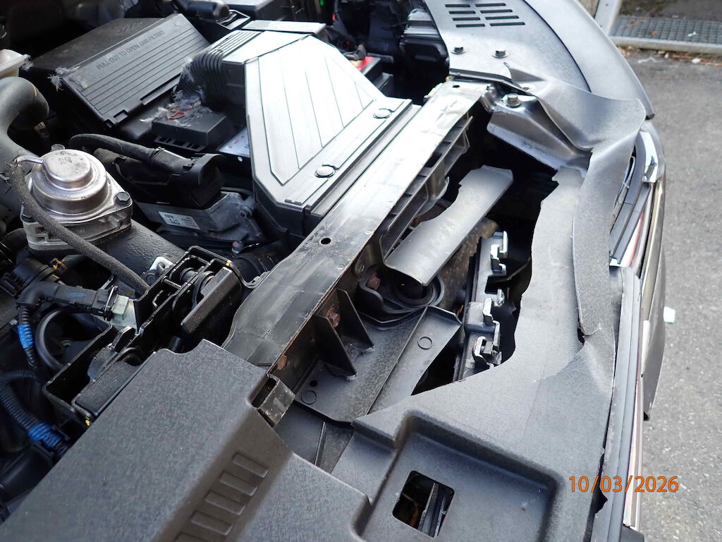 Motorhaube, Stossstange vo., Balken vo., Schlossträger vo., Kühlergrill, Kühler, Kondensator, Ladeluftkühler, Lüfter Motor Getriebe Vorderachse Hinterachse Airbags ausgelöst: 0 unbekannt ( Abfallcode 16.01.04ak )