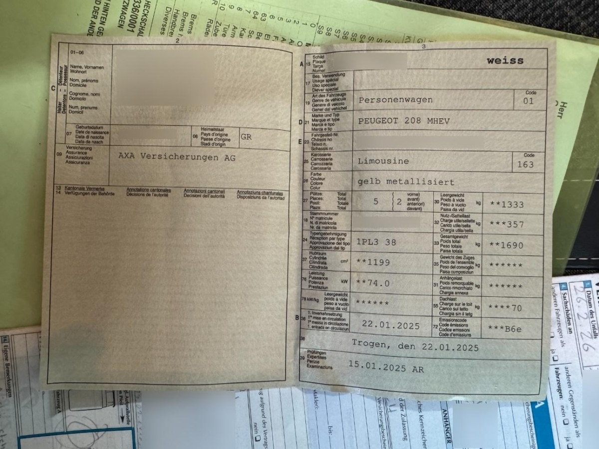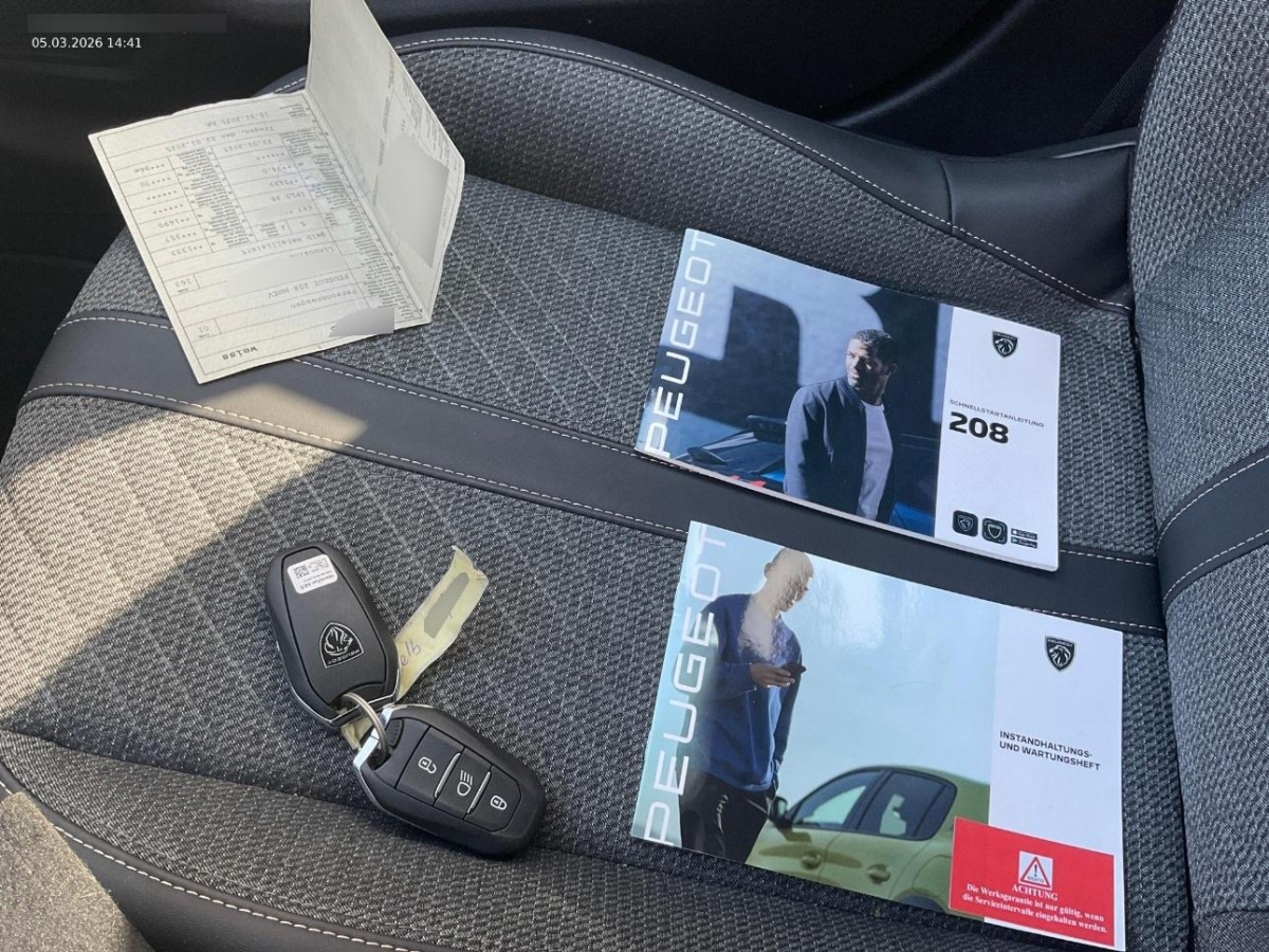 Licht: Scheinwerfer Peugeot LED Technology mit 3-Krallen-LED-Tagfahrlicht, Netze an der Rückenlehne der Vordersitze, Kühlergrill in Schwarz mit Details in Wagenfarbe, Lamellen in Dark Chrome, Garantie: 3 Jahre / 100 000 km Garantie auf Teile, Arbeit (je nachdem, welche Bedingung zuerst eintritt), Klima: Automatische Einzonen-Klimaanlage, Blende zwischen den Heckleuchten im glänzendem Schwarz, Zentralverriegelung mit Fernbedienung, Licht: Innenbeleuchtung : Deckenleuchte vorne (1 Lampe und 2 Leseleuchten) + Beleuchtung Kofferraum mit Lampe, Media: Peugeot i-Cockpit mit digitalem 10 Zoll Kombiinstrument, Media: PEUGEOT i-Connect - DAB-Radio rnit personalisierbarern - 10-Zoll-HD-Farbtouchscreen, Bluetooth - Wifi, 1 USB-Anschluss Typ C (Daten+Aufladung) - 1 USB-Anschluss Typ C ( Aufladung ) an der Vorderkonsole , 1 USB-Anschluss Typ C (Aufladung) und 1 USB-Anschluss Typ A (Aufladung) hinten, Fahrwerk: Fahrmodus-Schalter Normal/Eco/Sport, Getriebe: 6-Stufen-Automat sequentiell, Türverkleidungen vorne mit Carbon Dekor und Zierleiste schwarz glänzend, Mittelkonsole mit integrierter Armlehne und elektrischer Parkbremse inkl. Berganfahrhilfe, Pausenwarner, Lenkrad: Kompaktlederlenkrad mit integrierten Bedienelementen, Hintere Seitenscheiben und Heckscheibe getönt, Sitze: Umklappbare Rücksitzbank 1/3 - 2/3, Automatische Verriegelung aller Türen beim Fahren, Licht: Automatisches Abblendlicht, Sicherheitsgurte vorne mit pyrotechnischer Haspel mit Gurtstraffern und Kraftbegrenzern, Sicherheitsgurte hinten, mit progressiven Kraftbegrenzern, Innenraum und Dachhimmel Grau, Automatischer Frontwischer, Dekor: Armaturenbrett aus Schaumstoff mit Carbon Dekor und Zierleiste Schwarz glanzend mit Chromleis, Media: 6 Lautsprecher (2 Tweeters und 2 Woofers vorne, 2 Lautsprecher hinten), Aussenspiegelgehäuse in glänzendem Schwarz, Heckschürze Schwarz glänzend, Assist: Visuelle und akustische Einparkhilfe vorn und hinten, Räder: Indirekte Reifenluftdruckkontrolle, Räder: Zweifarbige 16-Zoll-Leichtmetallfelgen glanzgedreht NOMA, Lenkrad: Lenkrad in Höhe und Weite verstellbar, Servolenkung elektrisch, Dachkantenspoiler in glänzendem Schwarz, Elektronische Stabilitätskontrolle (ESP) mit Traktionskontrolle (ASR), ABS (Antiblockiersystem) EBV (Elektronischer Bremskraftverteiler), Notbremsassistent, Dynamische Stabilitätskontrolle (DSC) und Anhängerstabilitätssystem, Elektrische und sequenzielle Fensterheber vorn und hinten mit Klemmschutz, Licht: 3-Krallen-LED-Rückleuchten, Garantie: 12 Jahre Korrosionsschutzgarantie, Polster: Stoff CASUAL LOMSA gepragt, Tri Material LOMSA mit Ziernahten Quartz, Höhenverstellbare Kopfstützen an Fahrer Fahrer-und Beifahrersitz sowie Rücksitzen, Aussenspiegel elektrisch anklappbar, 3-Tasten-Fernbedienung + Standardschlüssel, Befestigung für zwei Kindersitze nach ISOFIX-Standard auf den Rücksitzen, inklusive Top Tether, Wegfahrsperre elektronisch, Aussenspiegel elektrisch verstell- und beheizbar, Airbag: Fahrer und Beifahrer Frontairbags, Seitenairbags für Fahrer und Beifahrer vorn und hinten - Kopfairbag, Media: Kabellose Mirror Screen ( Apple Car Play / Android Auto ), Lackierung: Metallic-Lackierung, Licht: Drittes Bremslicht, Peugeot Connect SOS & Assistenz Automatischer oder manueller Notruf per SOS-Push und direkte Verbindung mit der PEUGEOT Assistance-Plattform (24 Stunden am Tag, 7 Tage die Woche), Sitze: Sitzheizung vorne, Licht: Nebelschlussleuchte, Innenspiegel automatisch abblendbar