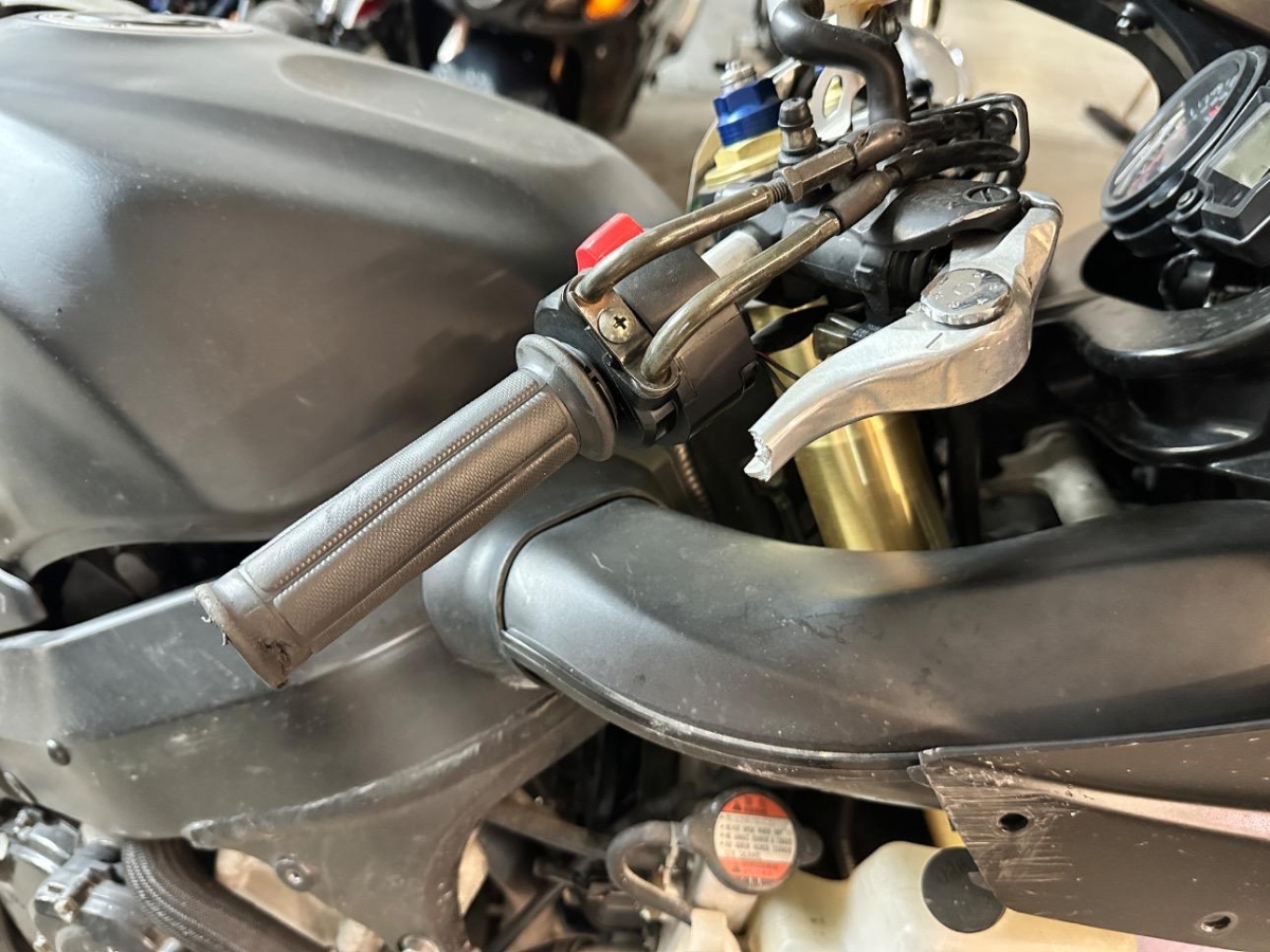 Auspufftopf, Aussenspiegel rechts, Diverse Anbauteile, Fussraster rechts, Griff rechts, Lenker, Motorgehäuse, Seite rechts, Tank, Verschalungen links, Verschalungen rechts, Verschalungen vorne, Windschutzscheibe
