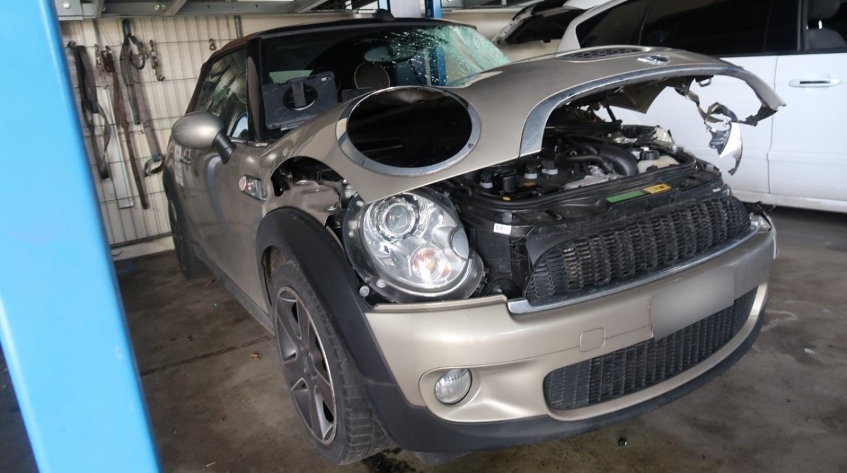 Armaturenbrett, Auspuffanlage, Federbein vorne rechts, Heck, Interieur, Kofferraumboden, Längsträger hinten links, Längsträger hinten rechts, Längsträger vorne rechts, Radaufhängung hinten links, Radaufhängung hinten rechts, Radaufhängung vorne rechts, Radhaus hinten links, Radhaus hinten rechts, Radhaus vorne rechts, Rücklicht links, Rücklicht rechts, Schweller rechts, Seitenwand links, Seitenwand rechts, Stossstange hinten, Türe vorne rechts