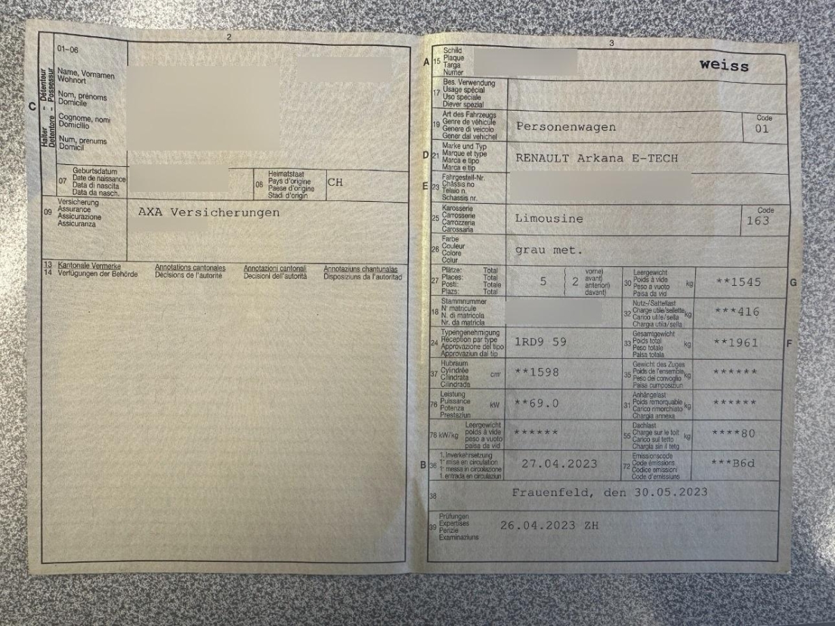 Bordcomputer, Media: Digitale Instrumententafel mit 10-Zoll Bildschirm, Wegfahrsperre elektronisch, Drehzahlmesser, Heckscheibenheizung, Servolenkung, Räder: Reifendruckkontrollsystem, Katalysator geregelt, Räder: Reifenreparatur-Kit, Elektronisches Stabilitäts-Programm (ESP), Licht: Drittes Bremslicht, 3-Punkt-Sicherheitsgurte auf allen Plätzen, 3 Kopfstützen hinten, Antiblockiersystem (ABS), Assist: Adaptiver Tempomat, Assist: Automatische Notfallbremsfunktion (AEBS), Assist: Automatischer Abstandsanzeiger, Assist: Einparkhilfe vorne und hinten - Ultraschallsensoren in Front- und Heckschürze, die den Abstand zum nächsten Hindernis hinter und vor dem Fahrzeug messen und signalisieren, Assist: Spurhalteassistent, Assist: Spurhaltewarner, Aussenspiegel rechts und links beheizt, elektrisch verstell- / und einklappbar, Automatisch abblendender Rückspiegel, Automatische Parkbremse mit Auto-Hold-Funktion, Automatischer Notruf (112), Automatisches Einschalten der Scheinwerfer und Scheibenwischer, Digitale Instrumententafel 7-Zoll, Dunkle Verglasung hinten, E-Shifter, Garantie: 3 Jahre oder 100'000 km - 3 Jahre Neuwagen-Garantie oder 100 000 km (was zuerst eintritt) - 12 Jahre Durchrostungsgarantie - 3 Jahre Lackgarantie, Garantie: Renault Garantie 8 Jahre Garantie auf die Batterie oder 160 000 km (ab 1. Inv.), Getriebe: Automatisiertes 6-Gang-Doppelkupplungsgetriebe, Getönte Scheiben, Heckscheiben-Wisch-/Waschanlage, Klima: Automatische Klimaanlage, Kopfstützen vorne höhenverstellbar, Lenkrad: Lederlenkrad, Licht: Adaptives Fernlicht, Licht: LED-Scheinwerfer, Licht: Nebelschlussleuchte, MULTI-SENSE mit Licht-Ambiente, Media: Integriertes Multimediasystem EASY LINK mit 9,3-Zoll Touchscreen, Media: Smartphone-Replikation Apple CarPlay und Android Auto, Paket: PACK NAVIGATION, Paket: PACK SAFETY, Pollenfilter (Staubfilter), Polster: Teilledersitze, Renault Karte Keyless-Drive Hands-Free automatische Entriegelung der Türen und / oder Heckklappe bei Annäherung, Schlüssel im Scheckkartenformat mit Fernbedienung, Räder: 18-Zoll Alufelgen Pasadena 215/55 R18 95H, Rückfahrkamera, Scheibenwischer vorne mit Intervall, Sitze: Rucksitzbank 1/3 - 2/3 umklappbar, Stopp-/Start-System, Tageskilometerzähler, Zentralverriegelung mit Fernbedienung