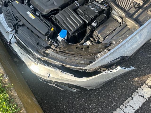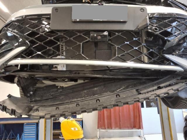 Fussgängerschutz ausgelöst. Front rechts eingedrückt. Kotflügel vorne rechts und links eingedrückt. Motorhaube eingedrückt. Frontblech/Maskenblech eingedrückt. Längsträger vorne rechts und links gestaucht. Fahrzeugvorbau nach rechts verschoben.